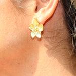 Un souffle de poésie et de lumière… Ces boucles d’oreilles en forme de fleurs au cœur doré évoquent la nature en pleine éclosion. Fines, brillantes et délicatement travaillées, elles ajoutent une touche de féminité à toutes vos tenues.