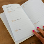 Son format A5 pratique, sa couverture rigide ivoire et or, et sa fermeture élastique élégante en font un compagnon de choix, aussi joli que fonctionnel.