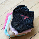 Ajoutez une note de fun et de douceur à vos looks avec ces chaussettes basses pailletées, décorées du message BISOU et d’un joli motif cœur. Leur matière douce et extensible s’adapte du 36 au 40, pour un confort parfait toute la journée.