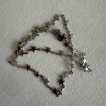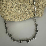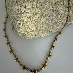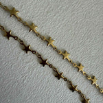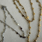 Ses fines breloques étoilées, délicatement plaquées, créent un bijou aérien et raffiné, disponible en doré ou en argenté.