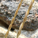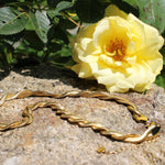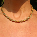 Un collier doré au design torsadé qui capte la lumière à chaque mouvement… Lumineux, fin et solaire, il se suffit à lui-même ou se superpose avec délicatesse à d'autres chaînes. Une pièce incontournable à avoir dans sa collection.