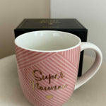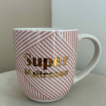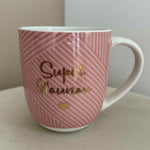Ce mug en céramique est orné du message « Super Maîtresse » ou « Super Nounou » délicatement inscrit à l’or à chaud pour une finition élégante et brillante.