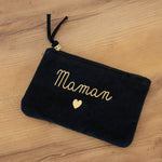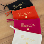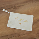 Offrez (ou offrez-vous) cette adorable pochette “Maman ♥” en gaze de coton, avec son inscription dorée et son cœur délicat, douce au toucher et légère comme une caresse.