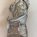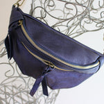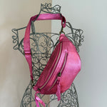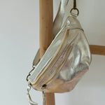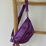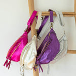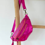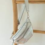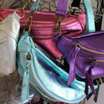 Avec sa forme arrondie ultra tendance, son cuir effet irisé et ses finitions lumineuses, ce modèle demi-lune se porte à la taille ou en crossbody pour garder les mains libres avec élégance.