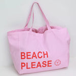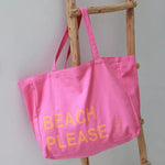 Avec son message fun BEACH PLEASE (Allons à la plage !) et ses coloris estivaux, ce grand sac en toile est prêt à vous suivre partout : plage, piscine, pique-nique ou virée shopping.