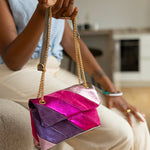 Pensé pour illuminer vos looks d’une touche chic et audacieuse, le sac Viva à bandoulière en cuir véritable, est le compagnon parfait pour pétiller en journée et briller en soirée !
