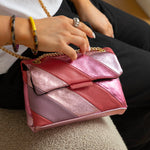 Sa texture douce et son éclat délicat révèlent un cuir soigneusement sélectionné, tandis que sa chaîne dorée ajoute une note précieuse et féminine.