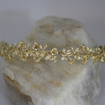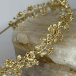 Ce serre-tĂȘte dorĂ© Ă la ligne fine et Ă©lĂ©gante, ornĂ© de dĂ©licates petites fleurs, est un vĂ©ritable bijou de tĂȘte. IdĂ©al pour une cĂ©rĂ©monie, un mariage ou une soirĂ©e habillĂ©e, il apporte une touche de lumiĂšre Ă vos coiffures, avec poĂ©sie et raffinement.