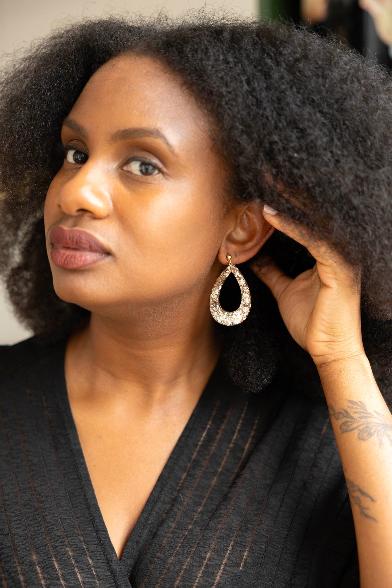 Envie de légèreté, de brillance et d’une touche de fantaisie ? Les boucles Diane apportent tout cela à la fois ! Leur forme fluide en résine pailletée illumine le visage en un clin d’œil, tout en restant ultra légères et agréables à porter au quotidien.