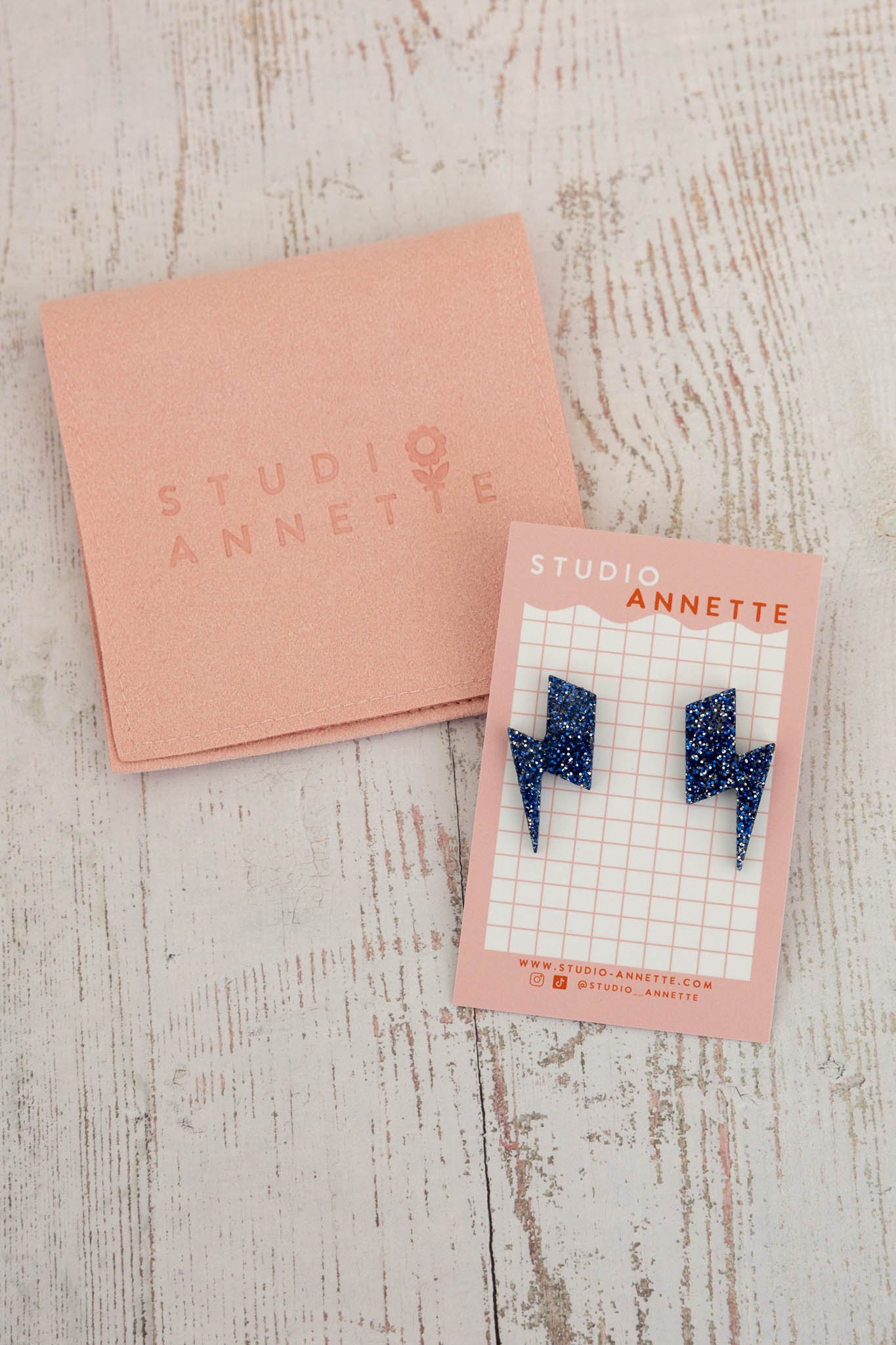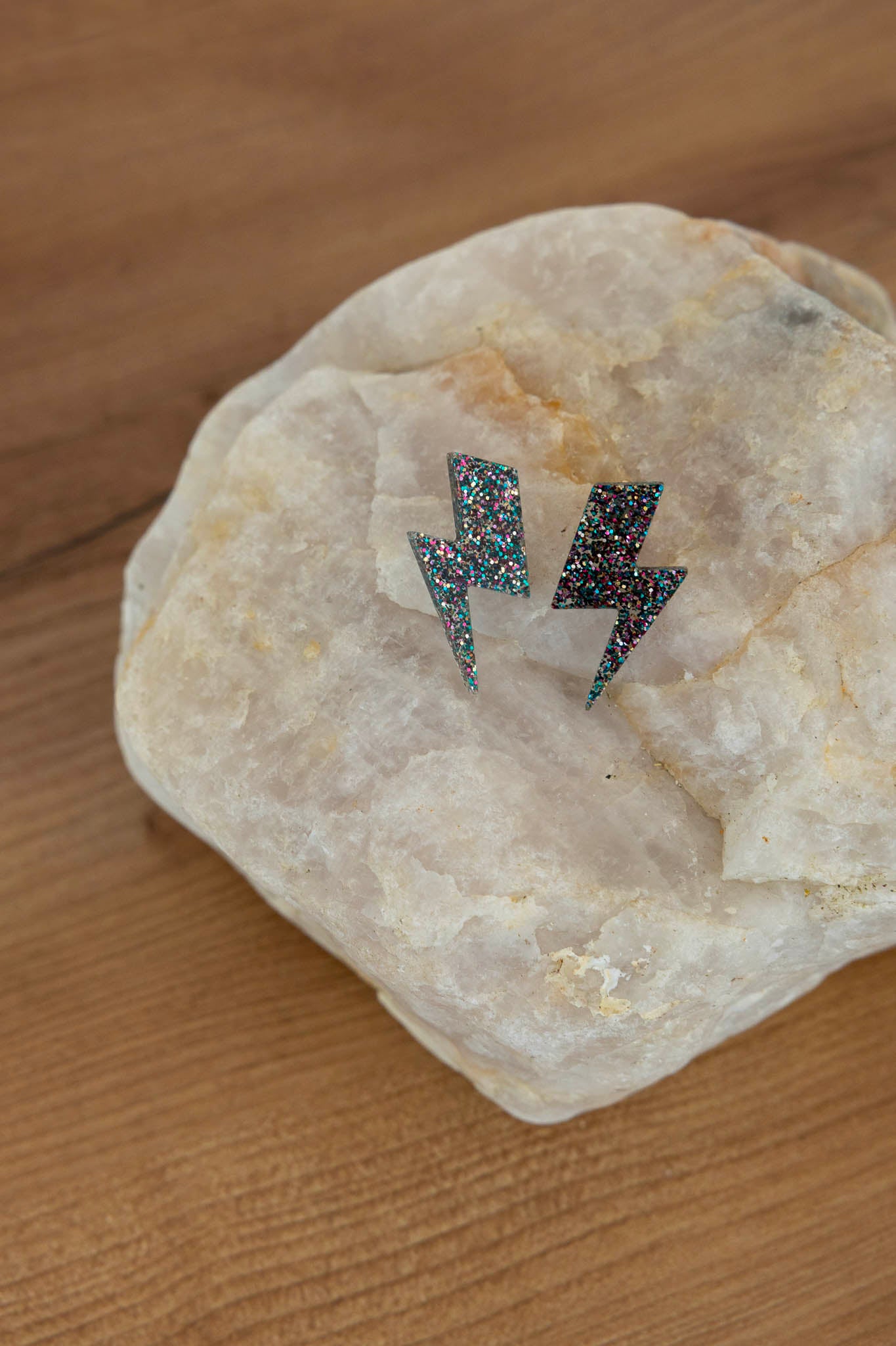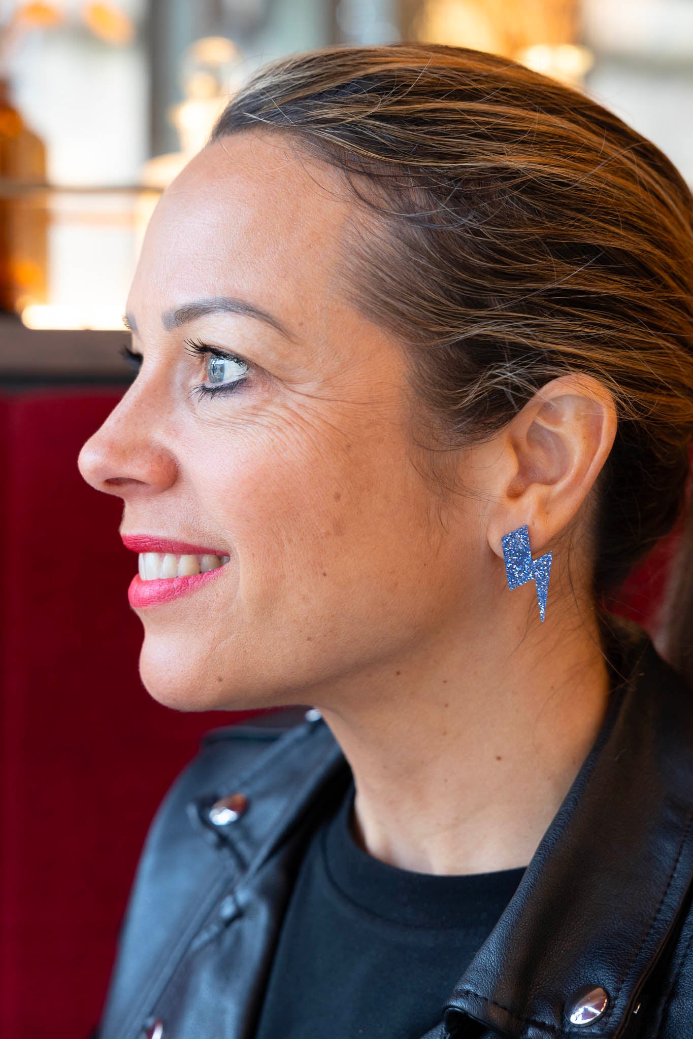 Avec leur forme graphique et leurs paillettes lumineuses, ces boucles puces Eclairs ajoutent une dose d’énergie et de fantaisie à vos looks, de jour comme de nuit.