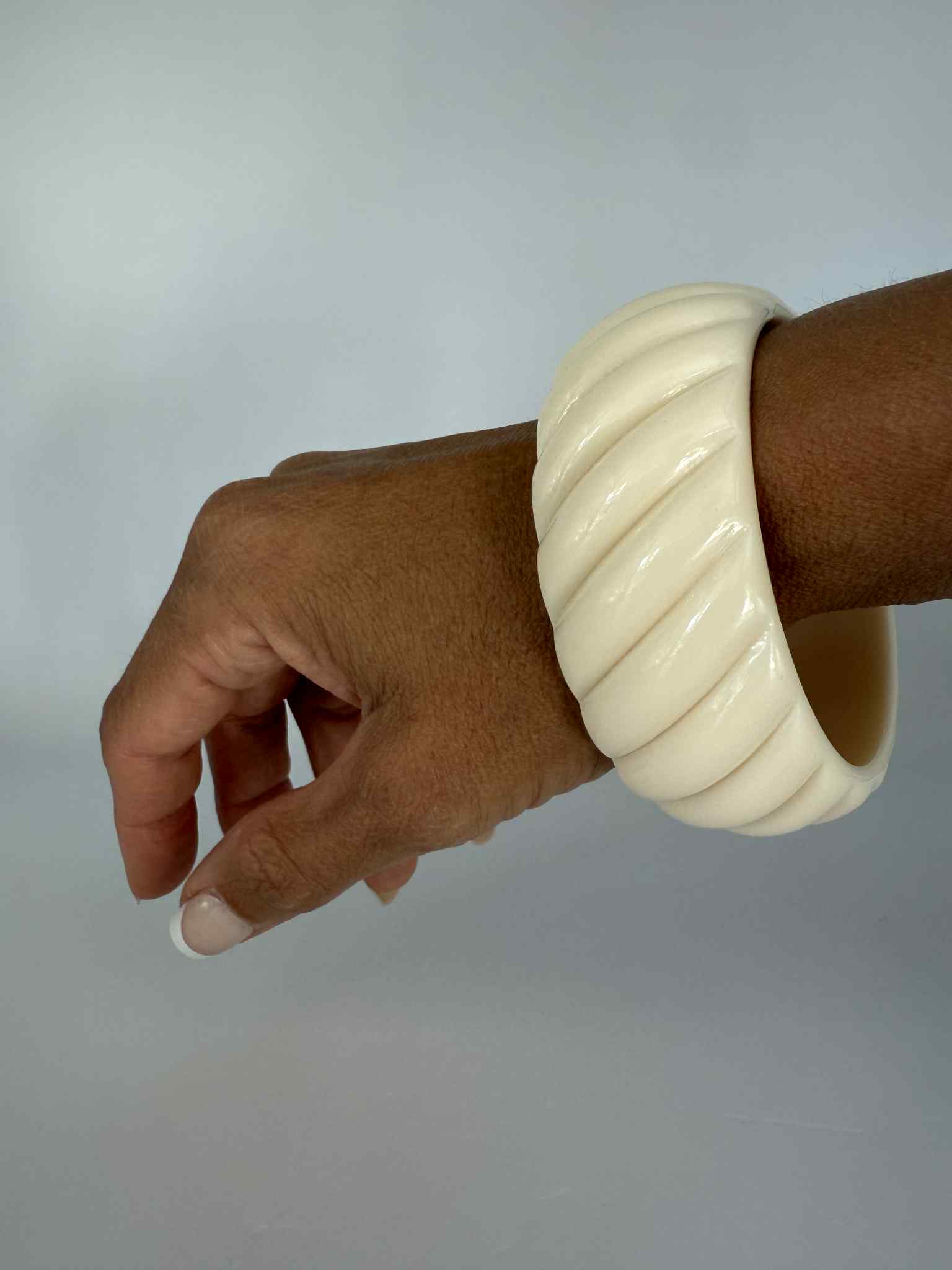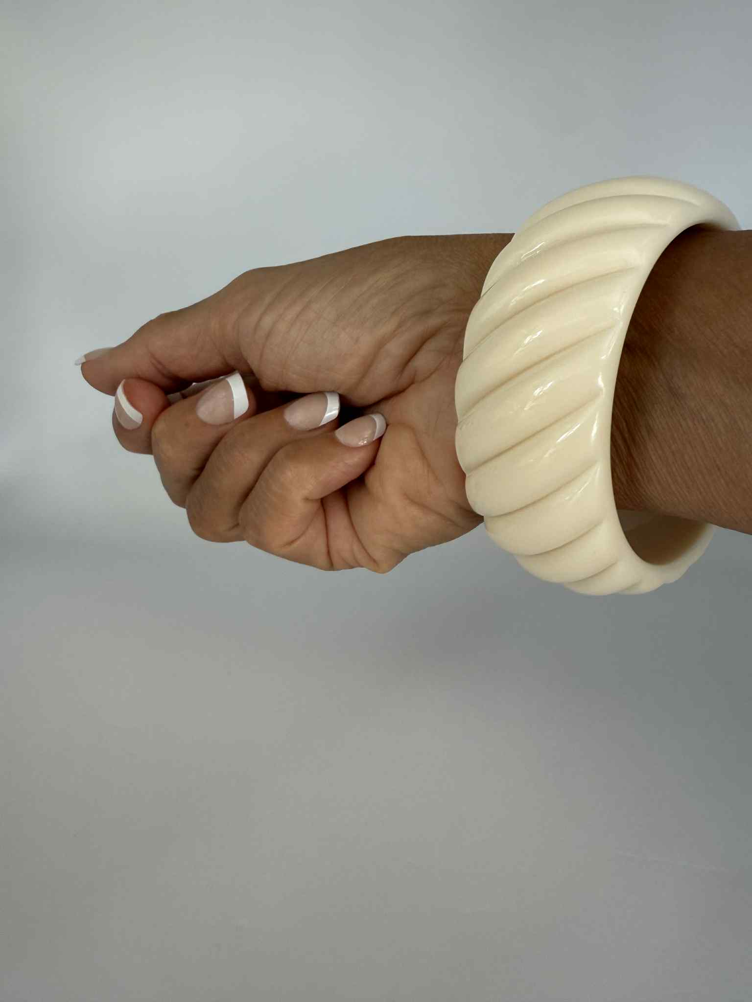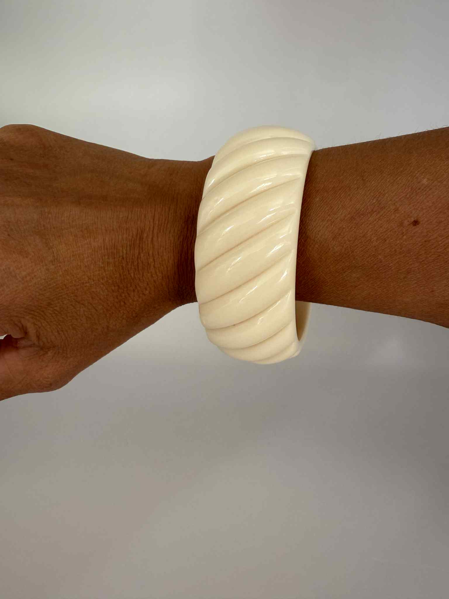 Élégant et intemporel, ce bracelet large en résine ivoire signé Satine Paris est la pièce idéale pour sublimer vos looks avec simplicité et raffinement. Sa couleur douce et lumineuse illumine le poignet, tandis que sa forme large affirme un style moderne et distingué.