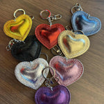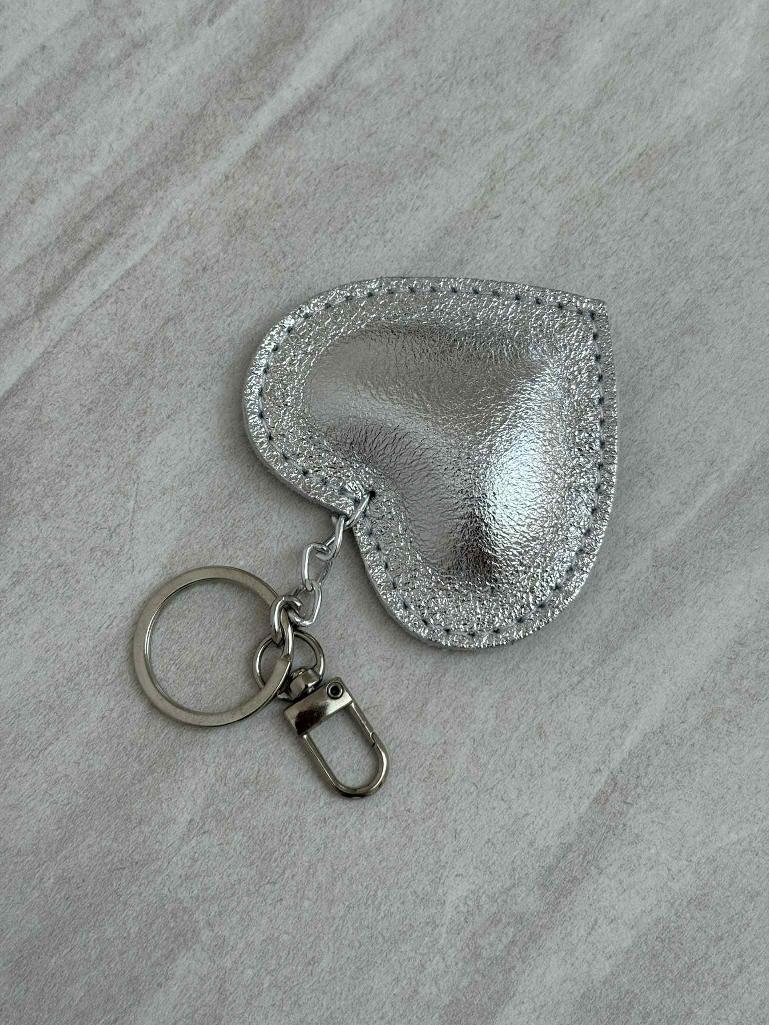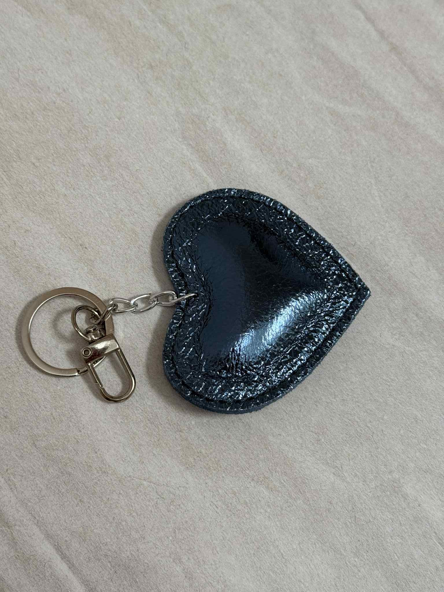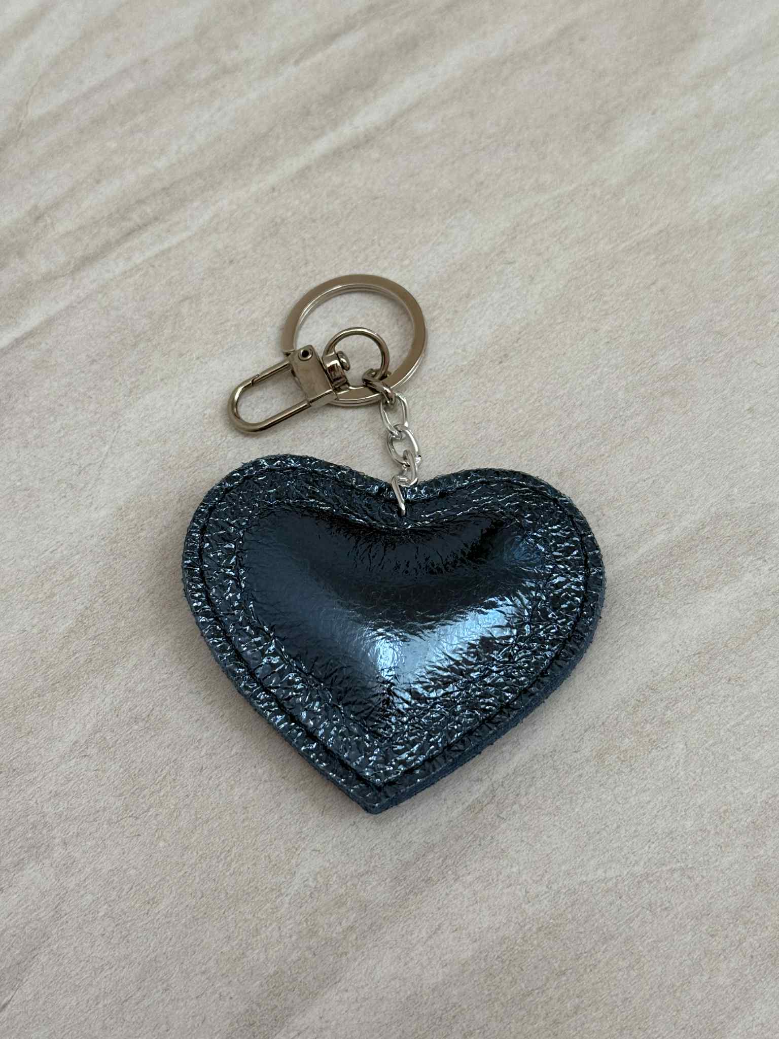 Un porte-clé cœur en cuir irisé signé Bohm Paris, mignon et raffiné, à accrocher à vos clés ou à votre sac pour une touche scintillante