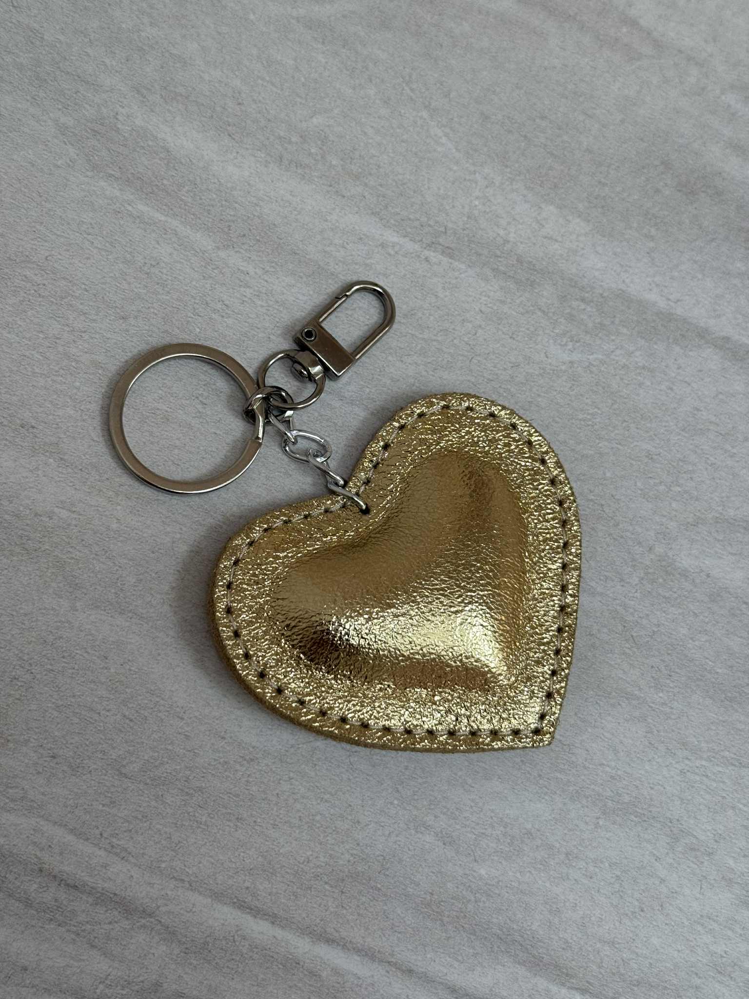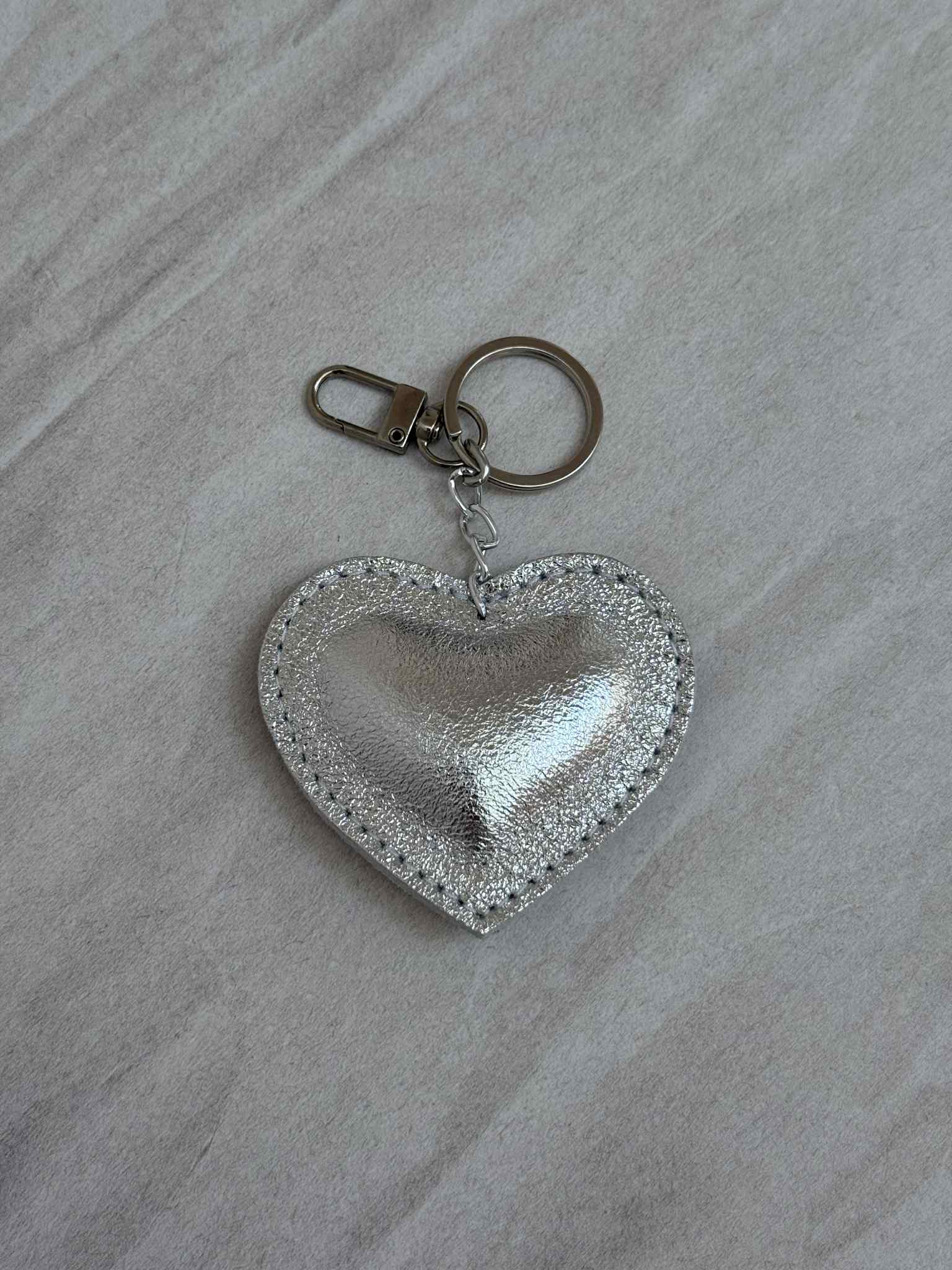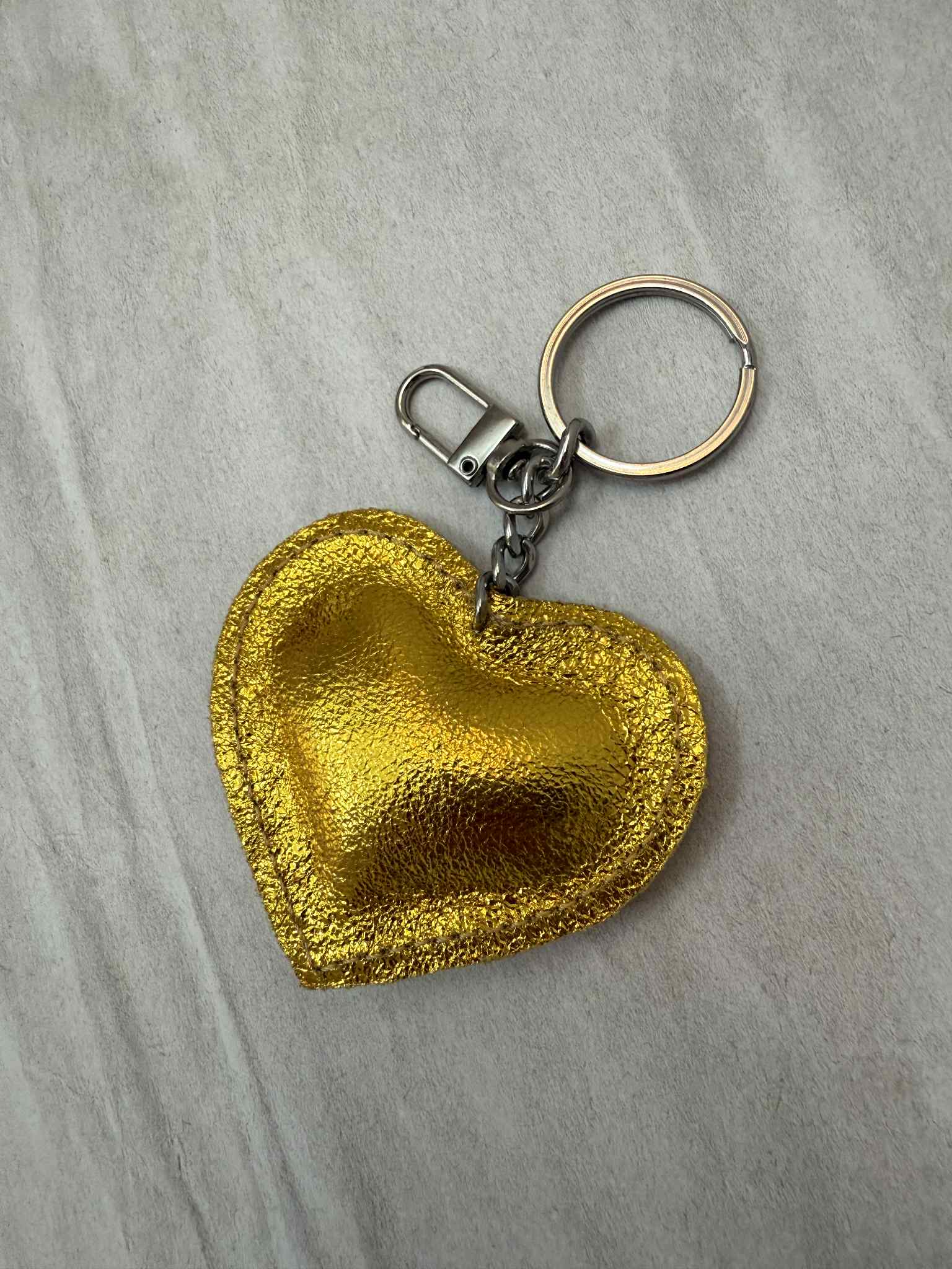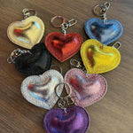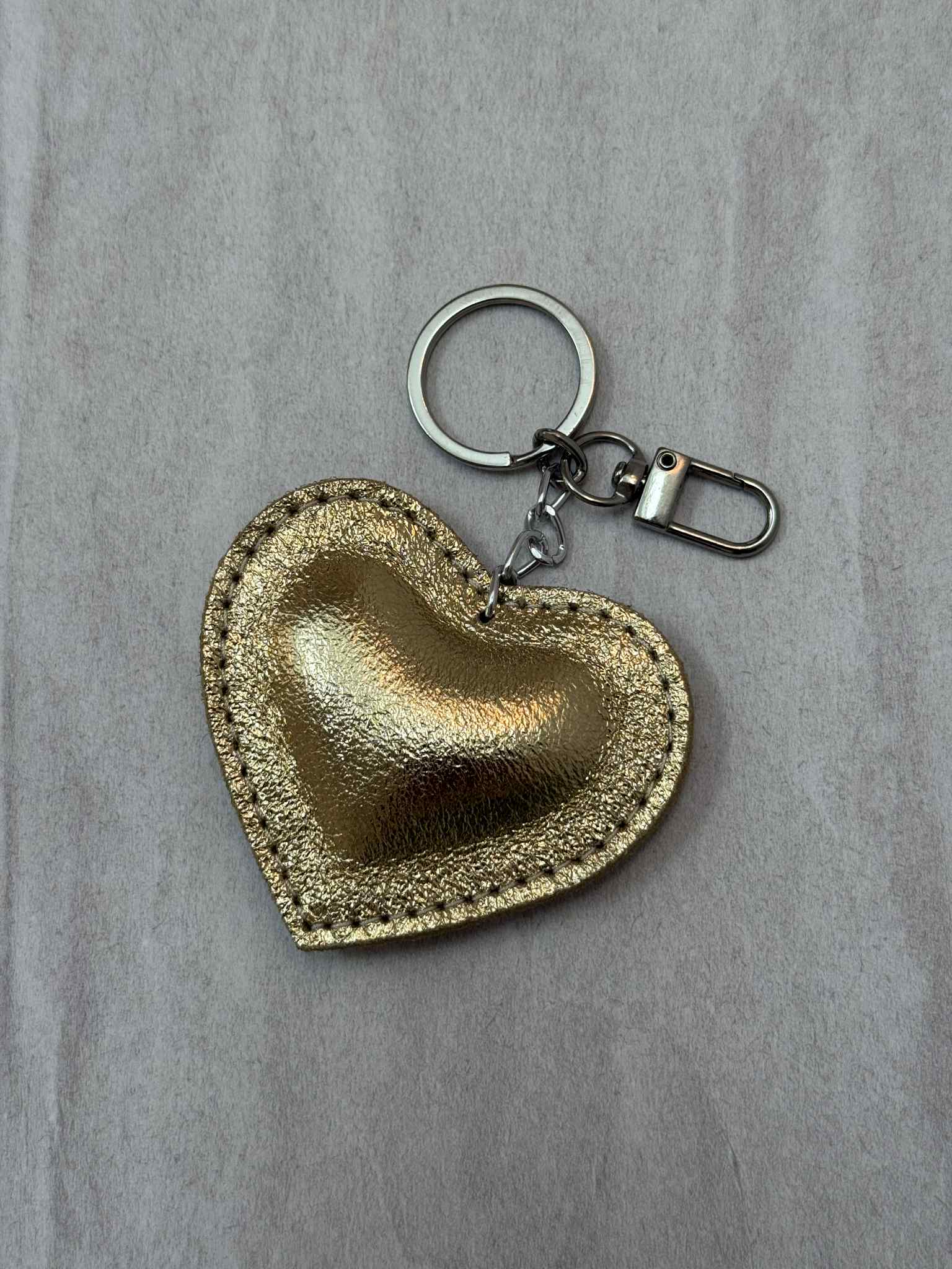 Un porte-clé cœur en cuir irisé signé Bohm Paris, mignon et raffiné, à accrocher à vos clés ou à votre sac pour une touche scintillante