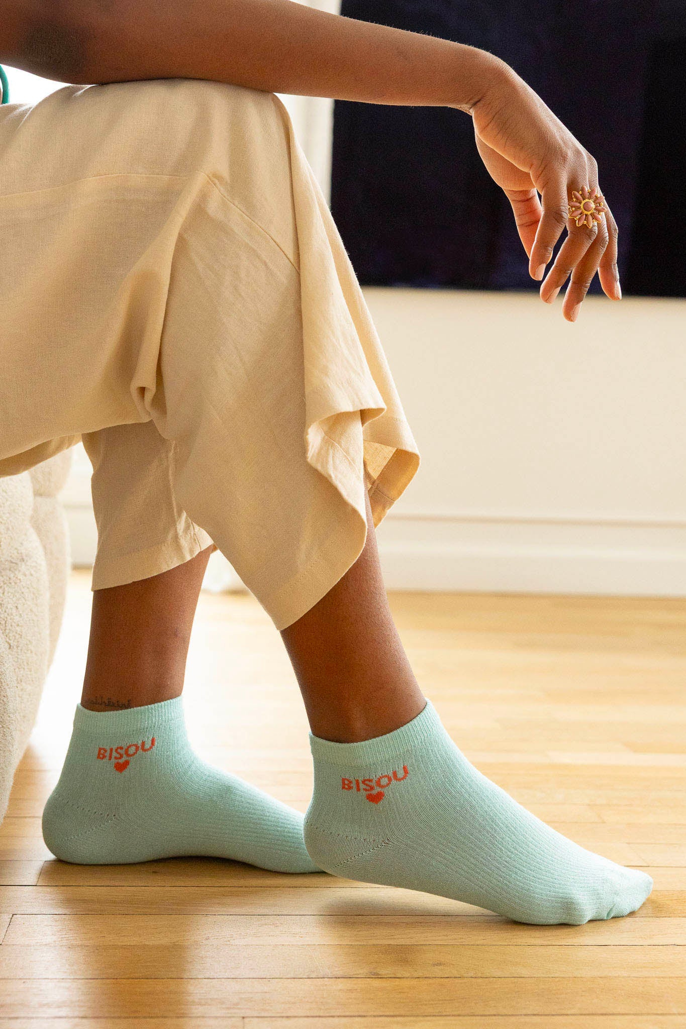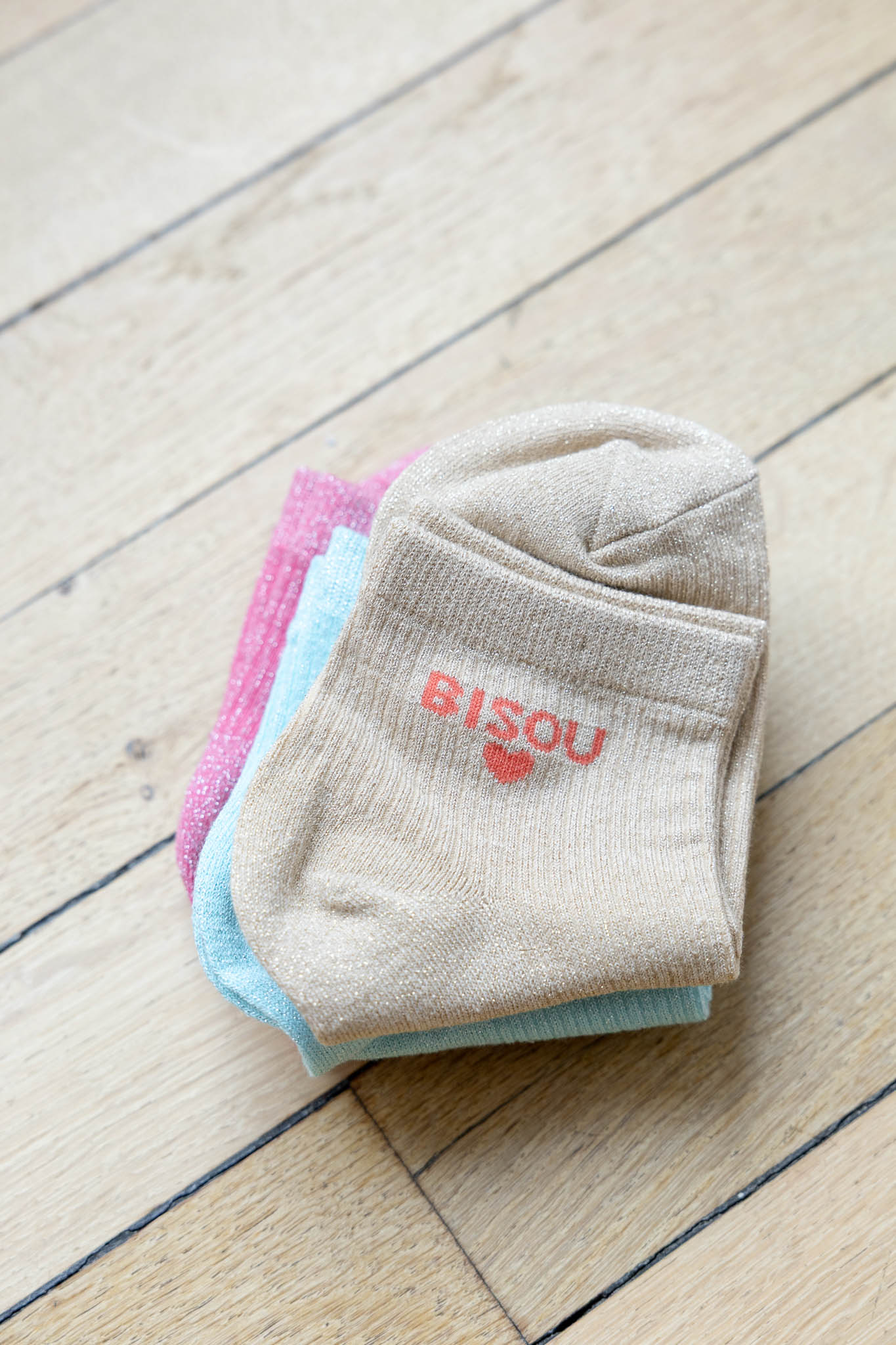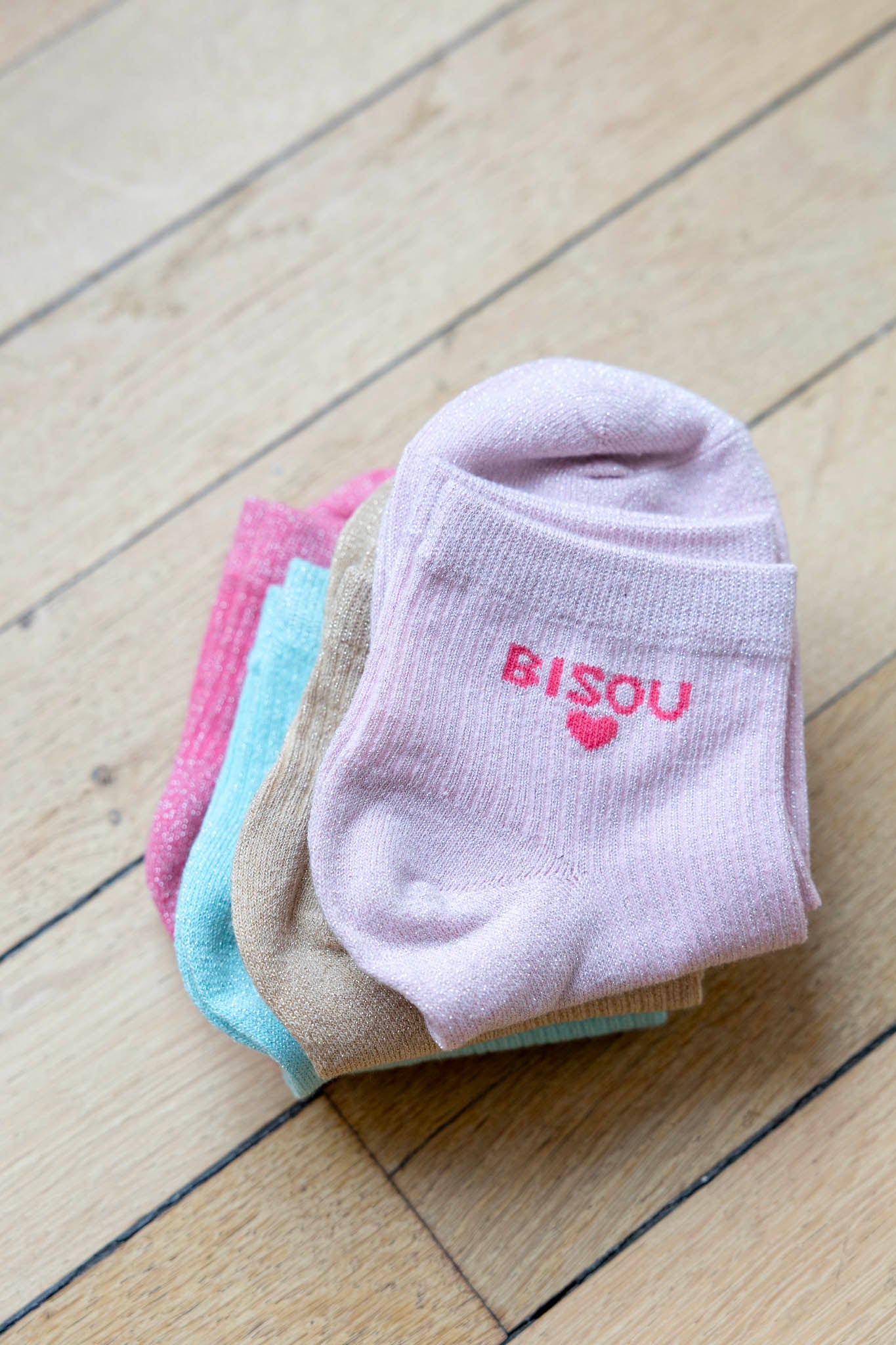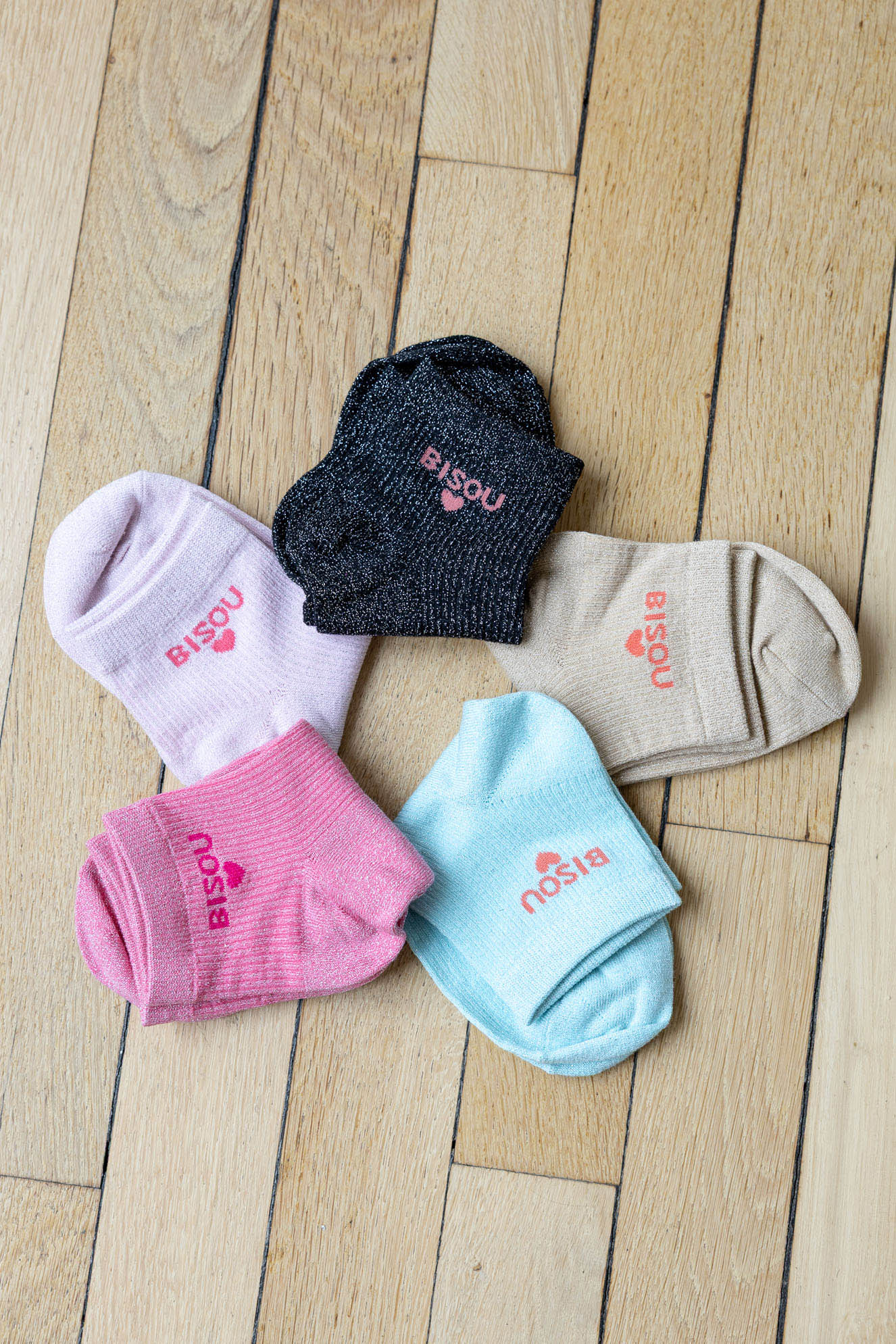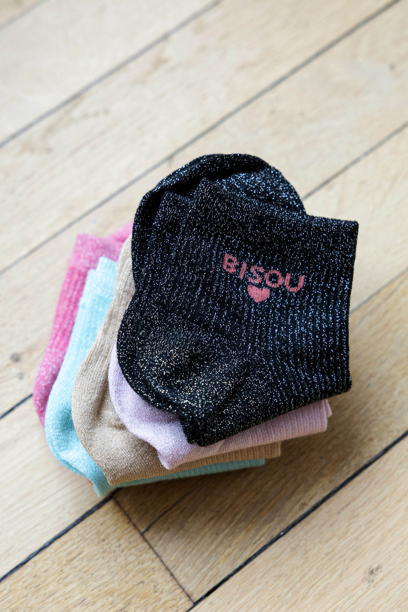 Ajoutez une note de fun et de douceur à vos looks avec ces chaussettes basses pailletées, décorées du message BISOU et d’un joli motif cœur. Leur matière douce et extensible s’adapte du 36 au 40, pour un confort parfait toute la journée.