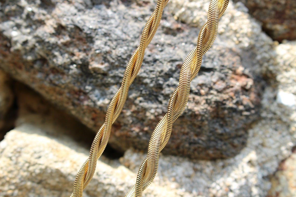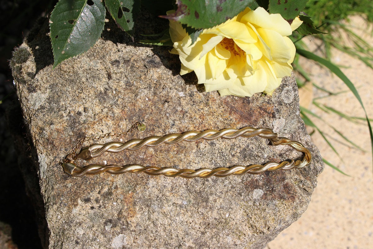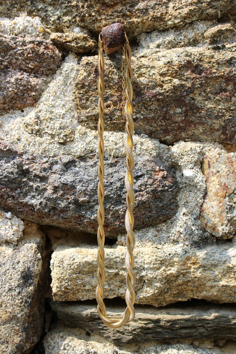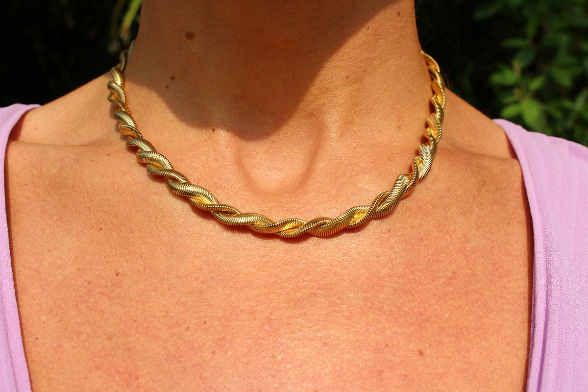 Un collier doré au design torsadé qui capte la lumière à chaque mouvement… Lumineux, fin et solaire, il se suffit à lui-même ou se superpose avec délicatesse à d'autres chaînes. Une pièce incontournable à avoir dans sa collection.