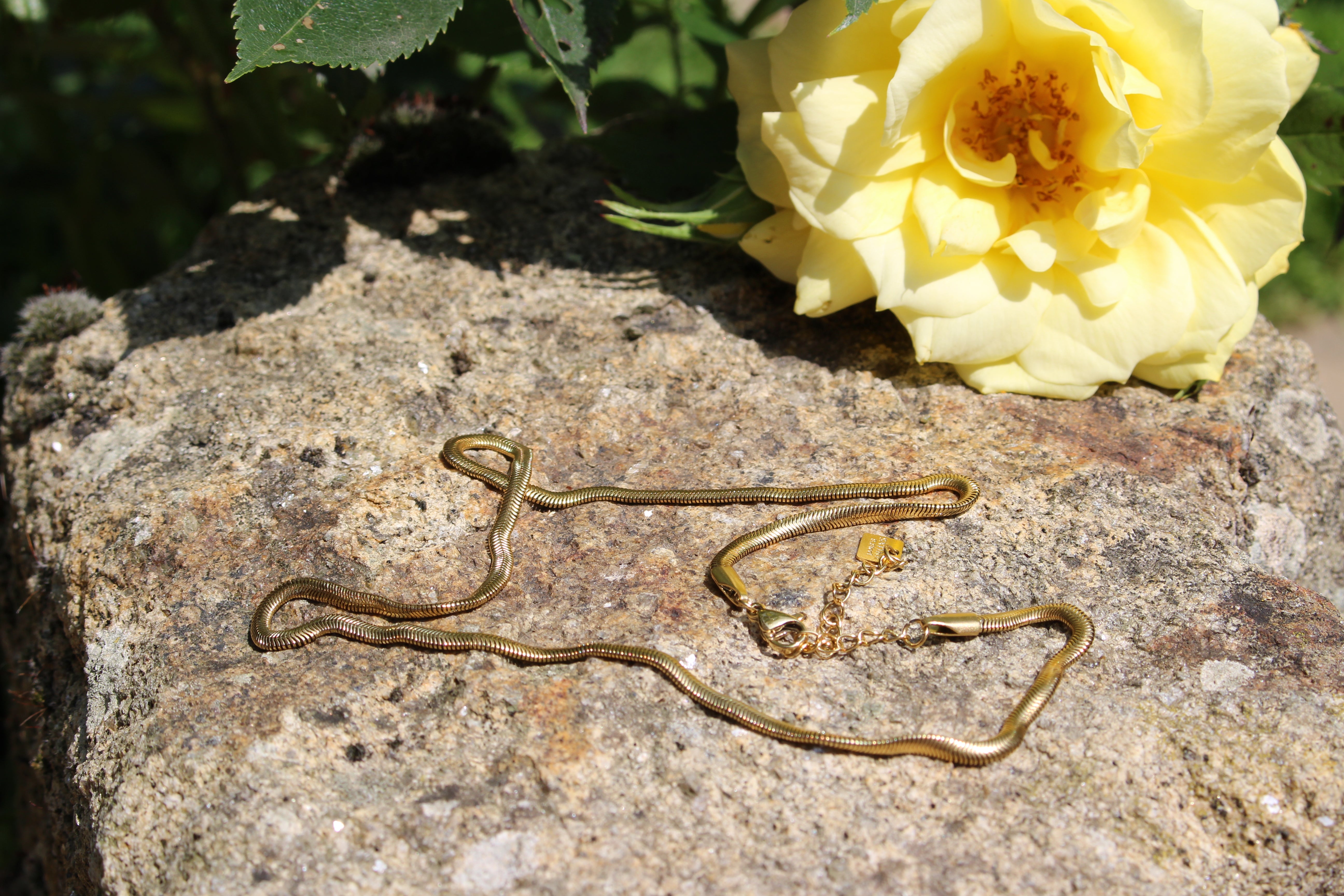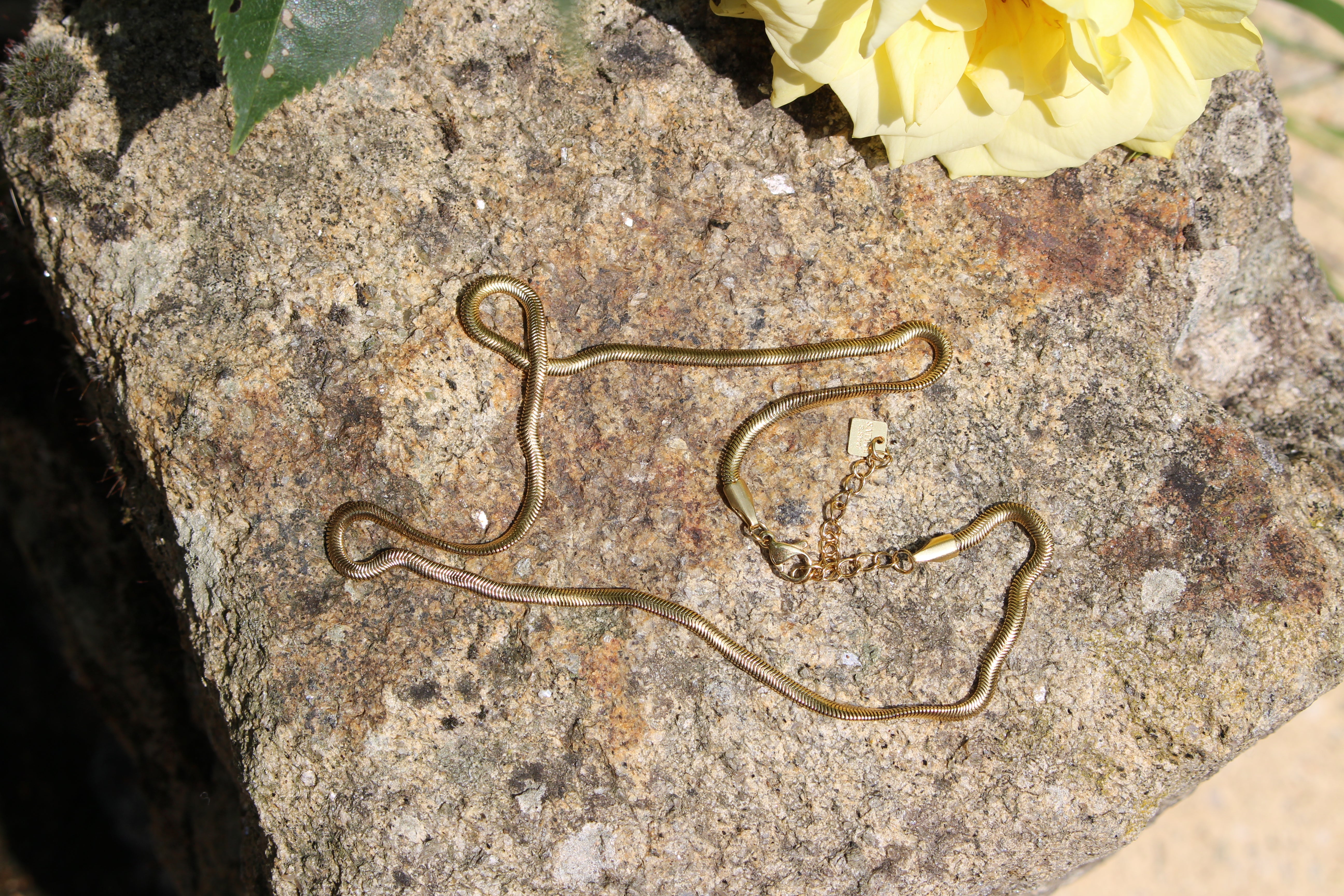 Offrez-vous le collier en maille serpent signé Satine, l’accessoire chic qui s’adapte à toutes vos envies.