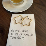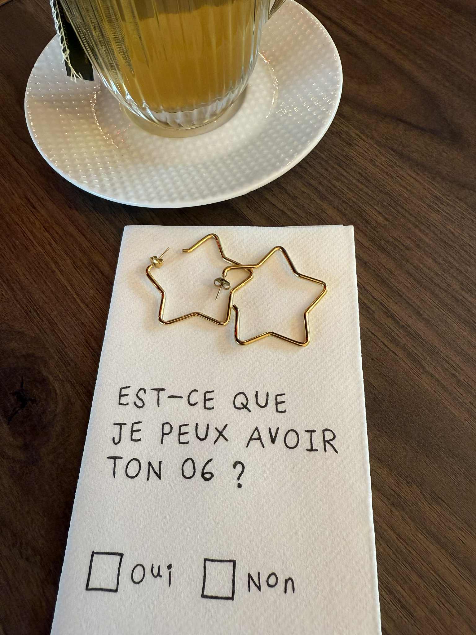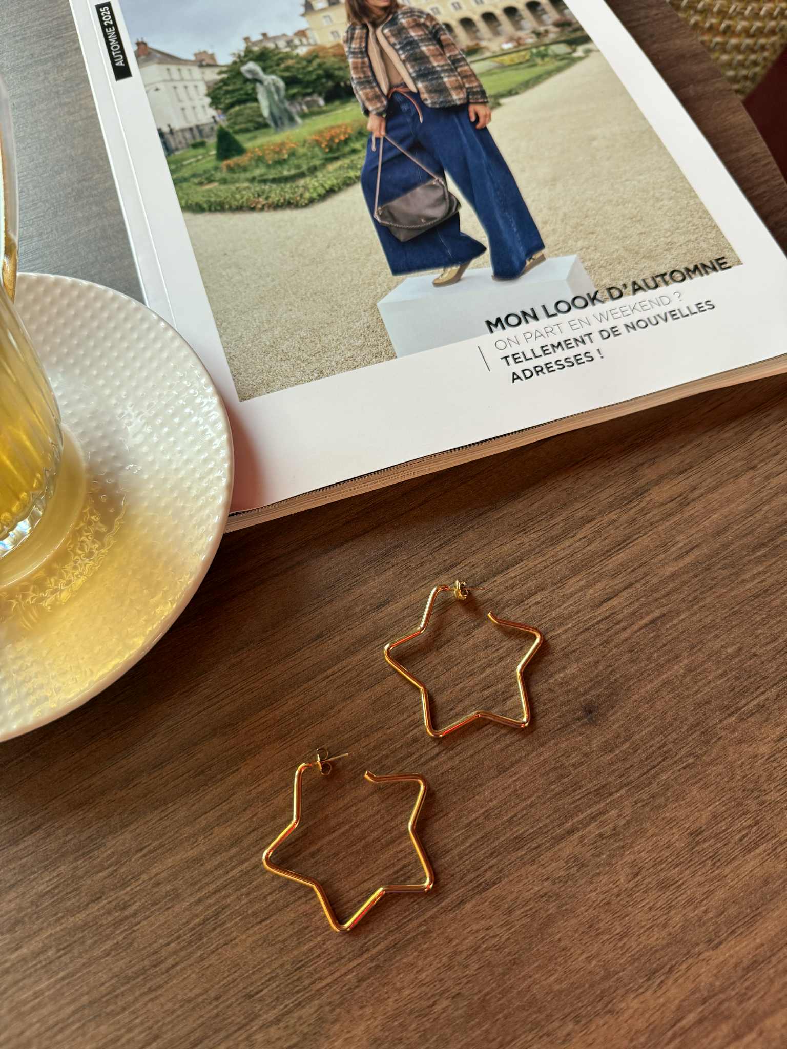 Avec leur design en forme d’étoile, ces créoles dorées captent la lumière et subliment vos tenues d’une touche scintillante. Légères et confortables, elles se portent du matin jusqu’au soir sans effort. Leur format parfait en fait l’accessoire idéal aussi bien pour illuminer vos looks du quotidien que pour compléter vos tenues festives 💛