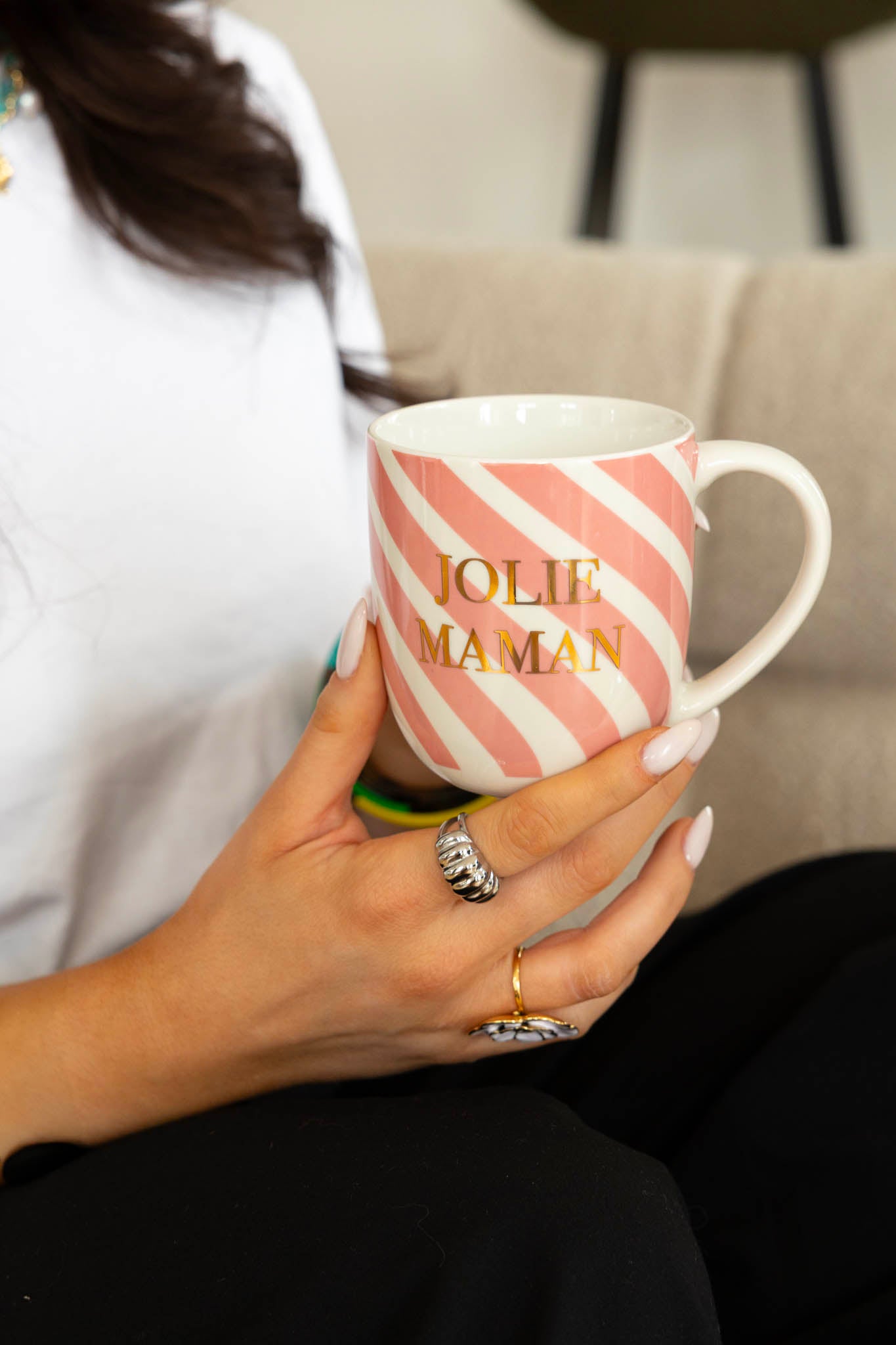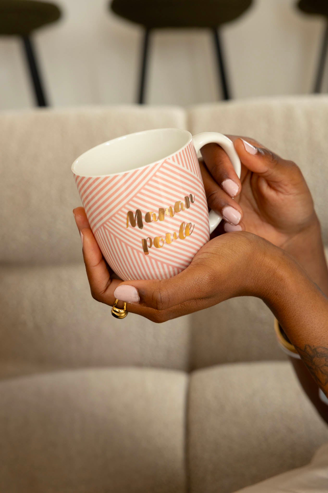 Message « Jolie Maman » ou « Maman Poule » inscrit à l’or à chaud sur le mug