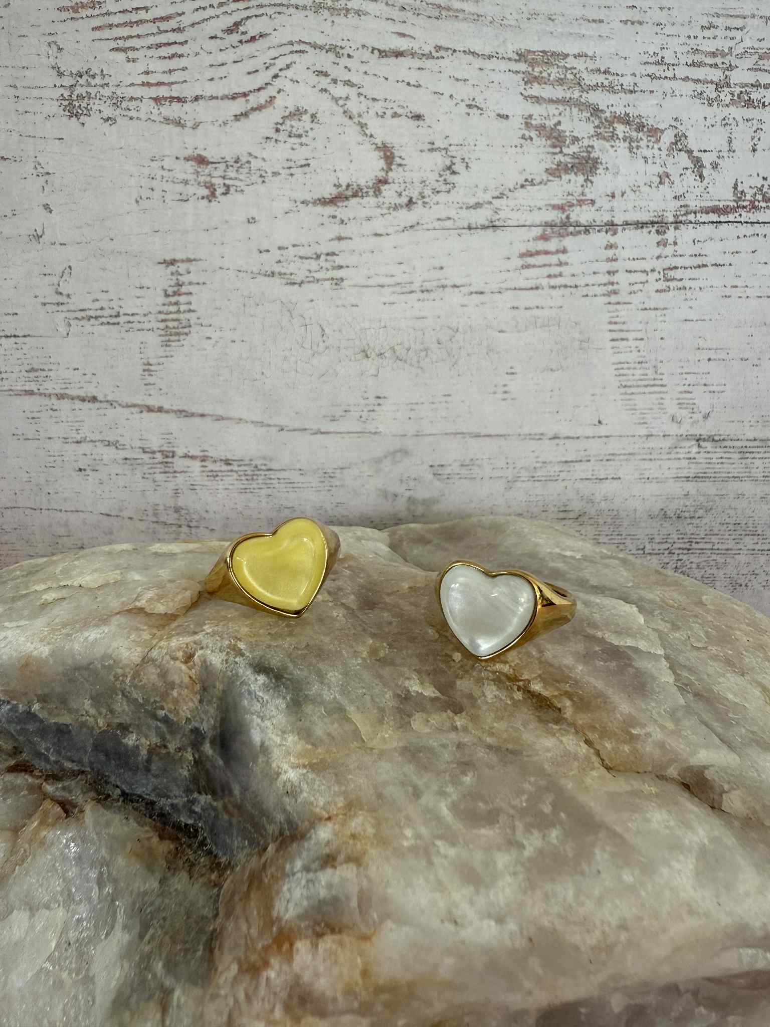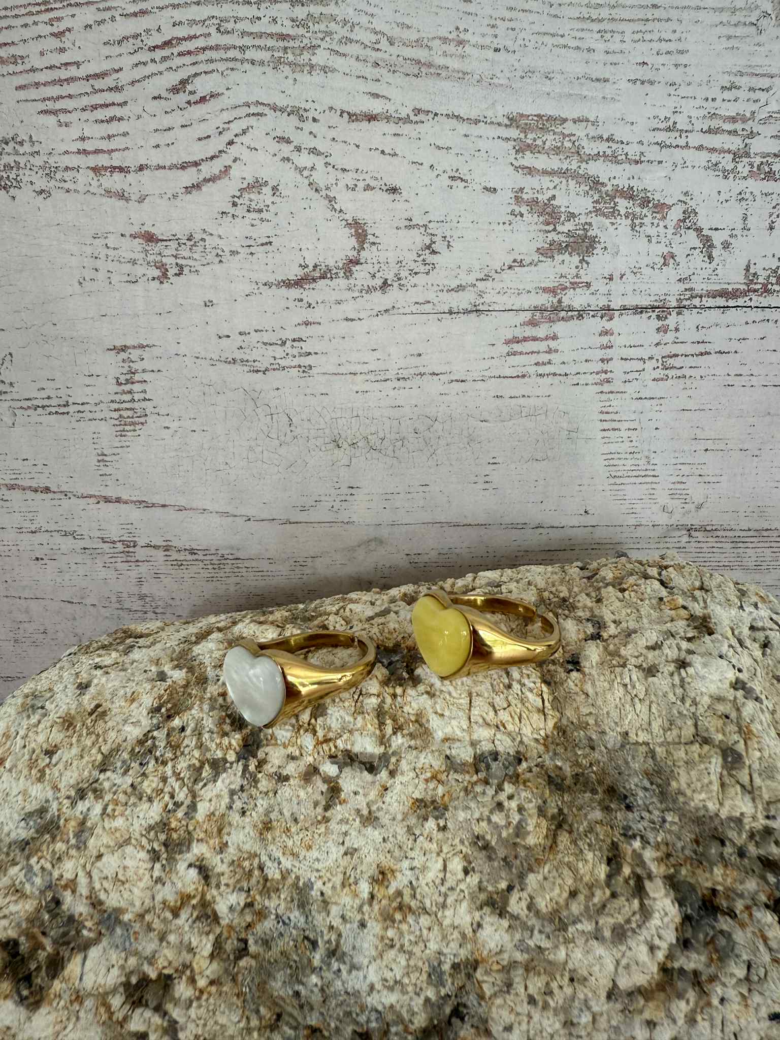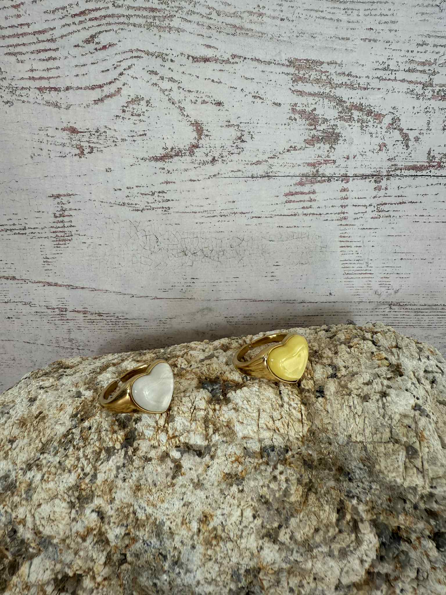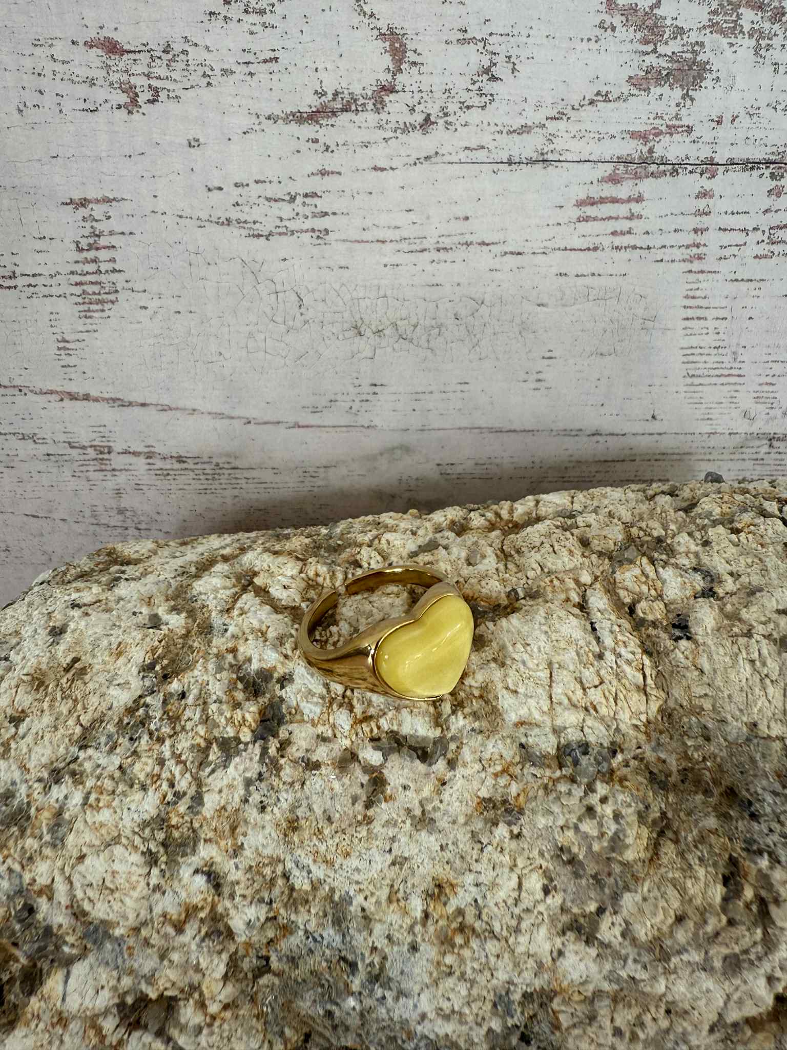 Bague chevalière en acier inoxydable doré, ornée d’un cœur en résine délicatement en relief 🌟