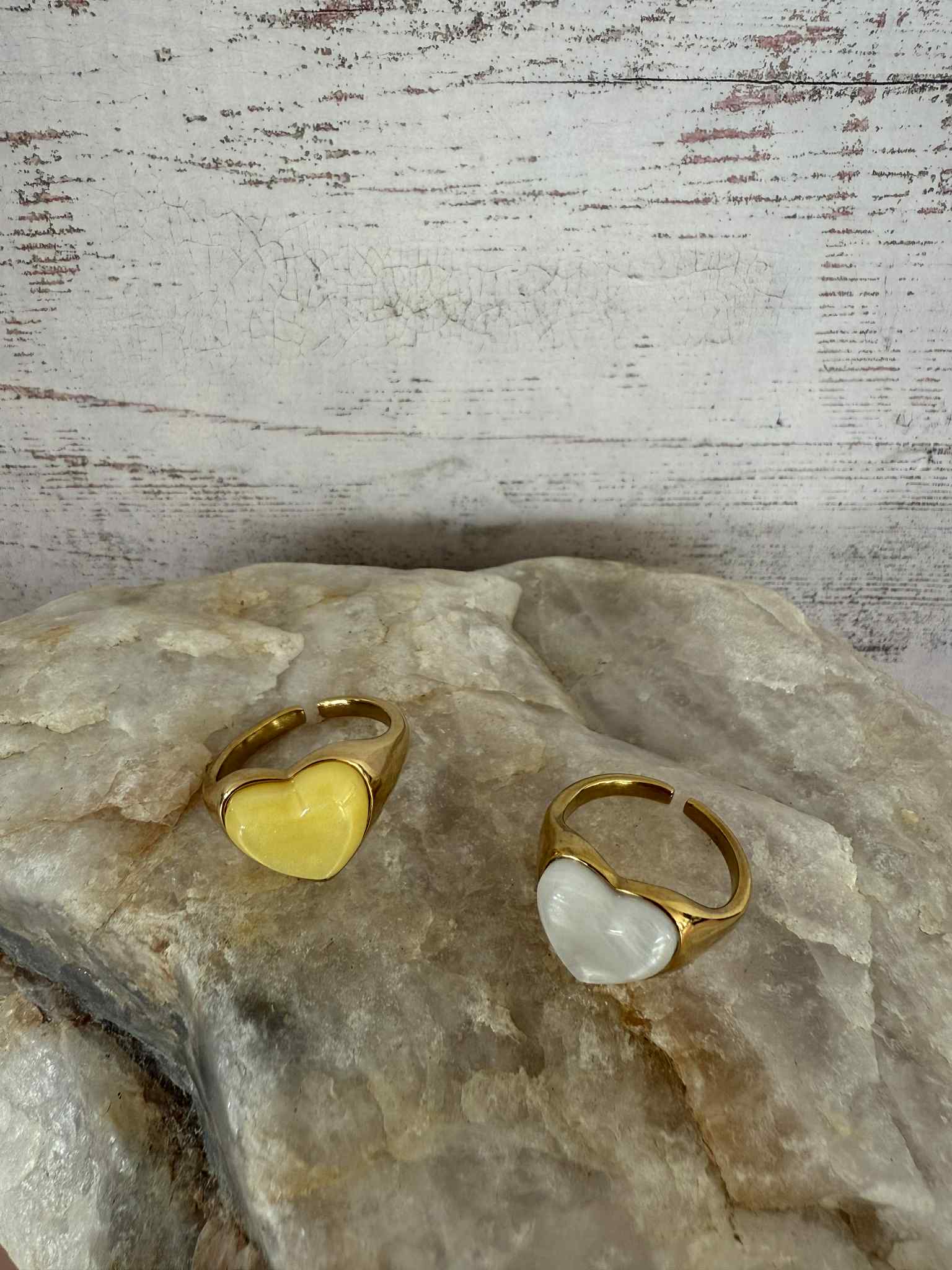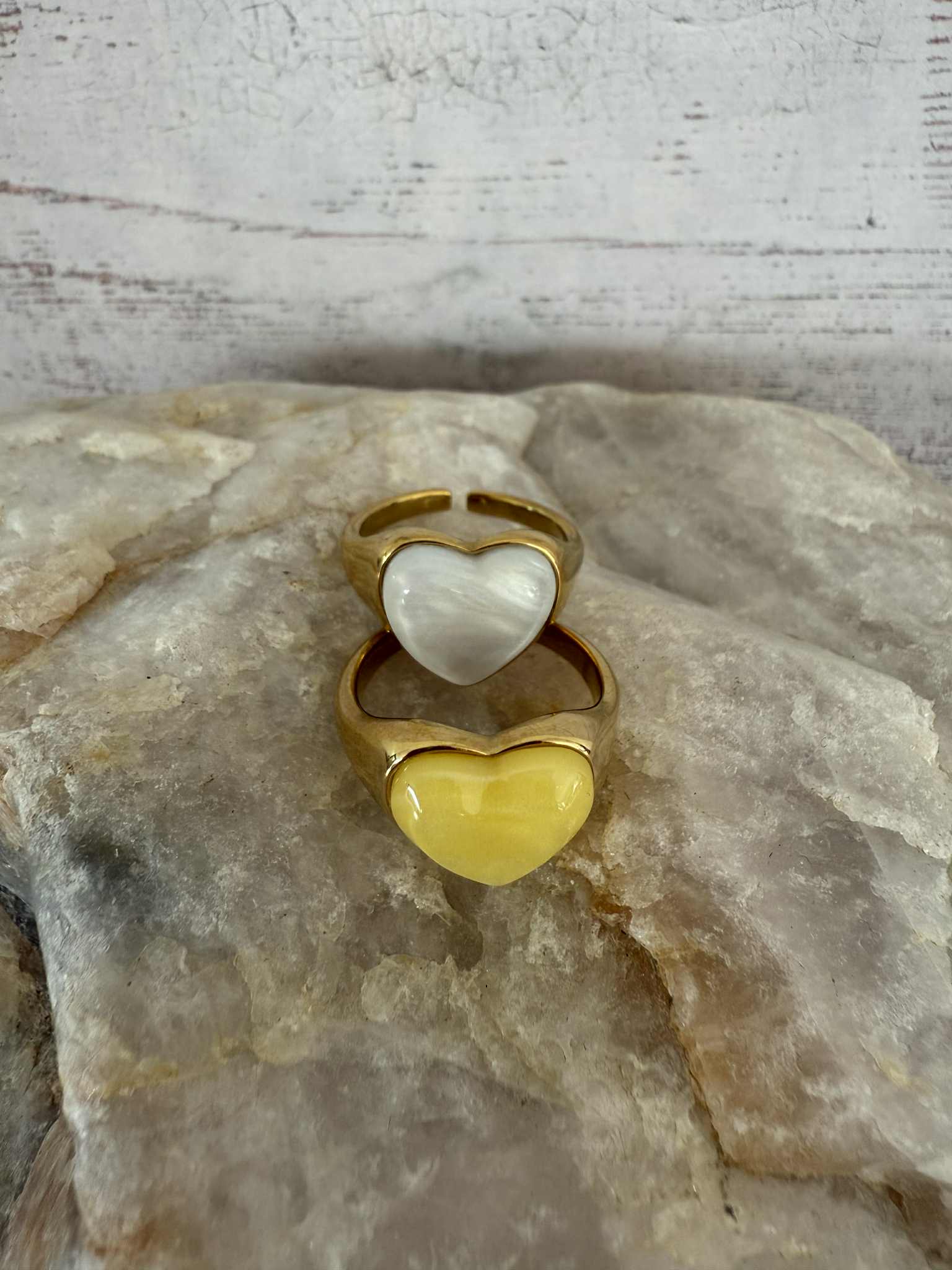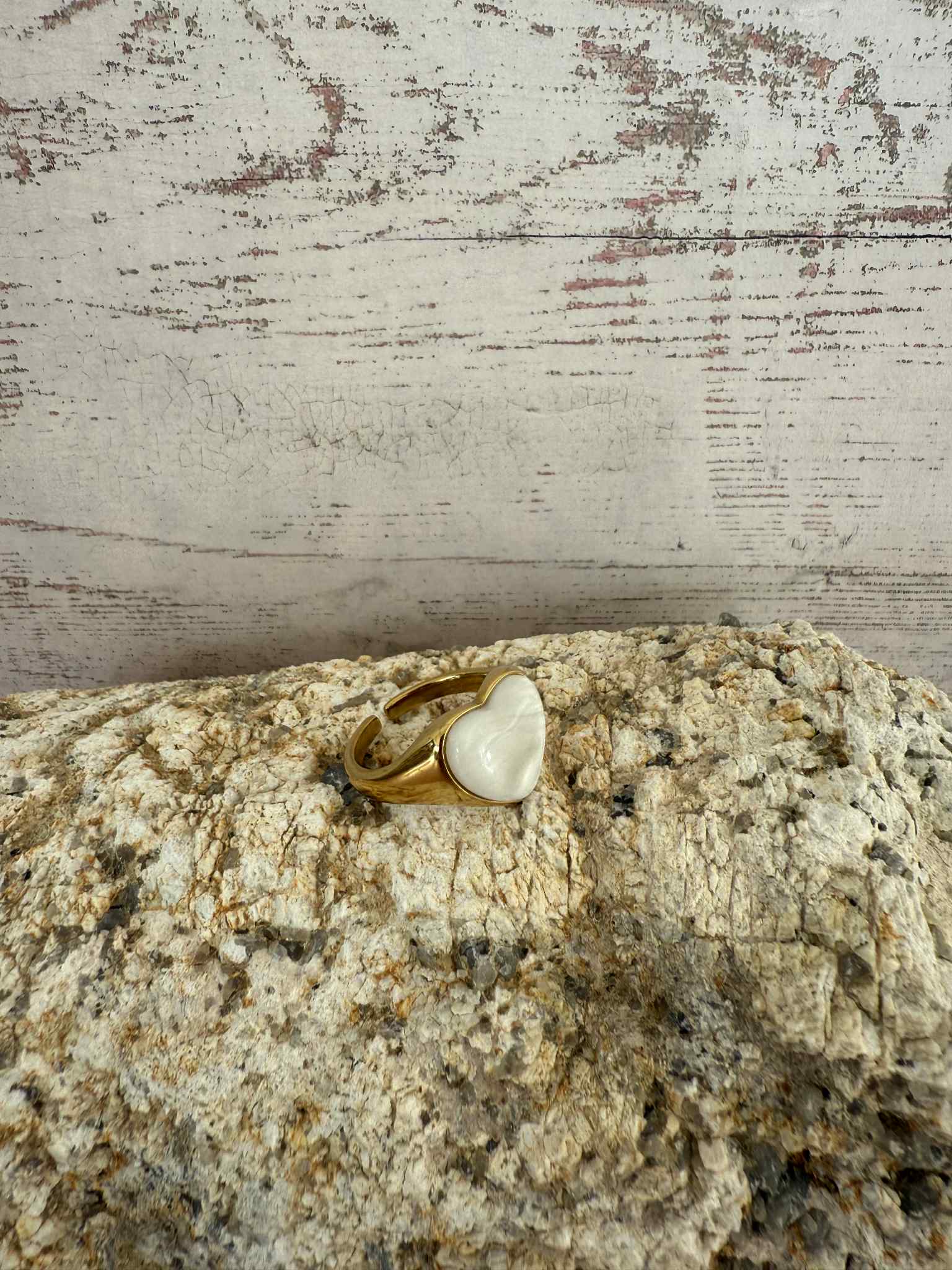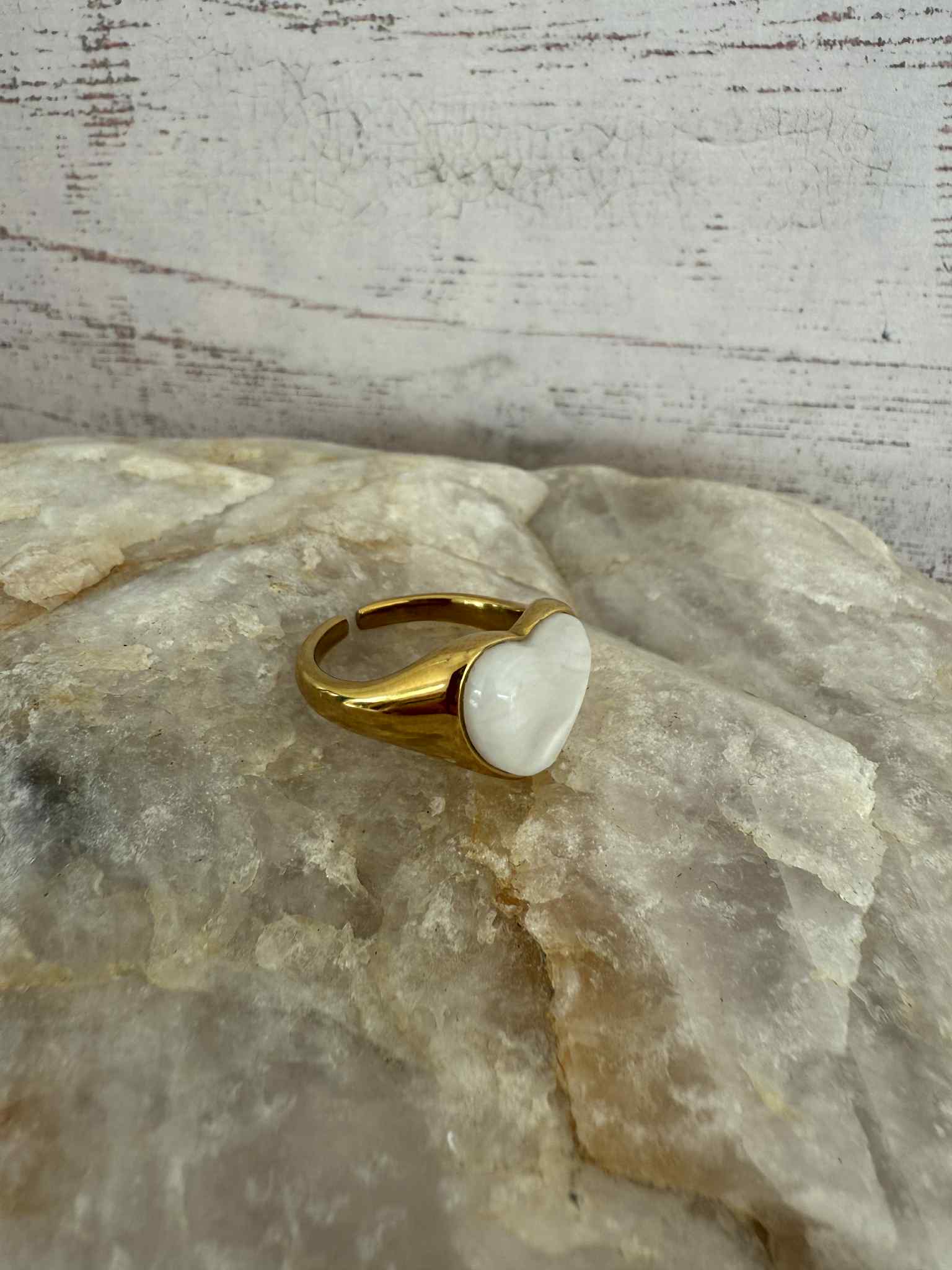 Bague chevalière en acier inoxydable doré, ornée d’un cœur en résine délicatement en relief 🌟