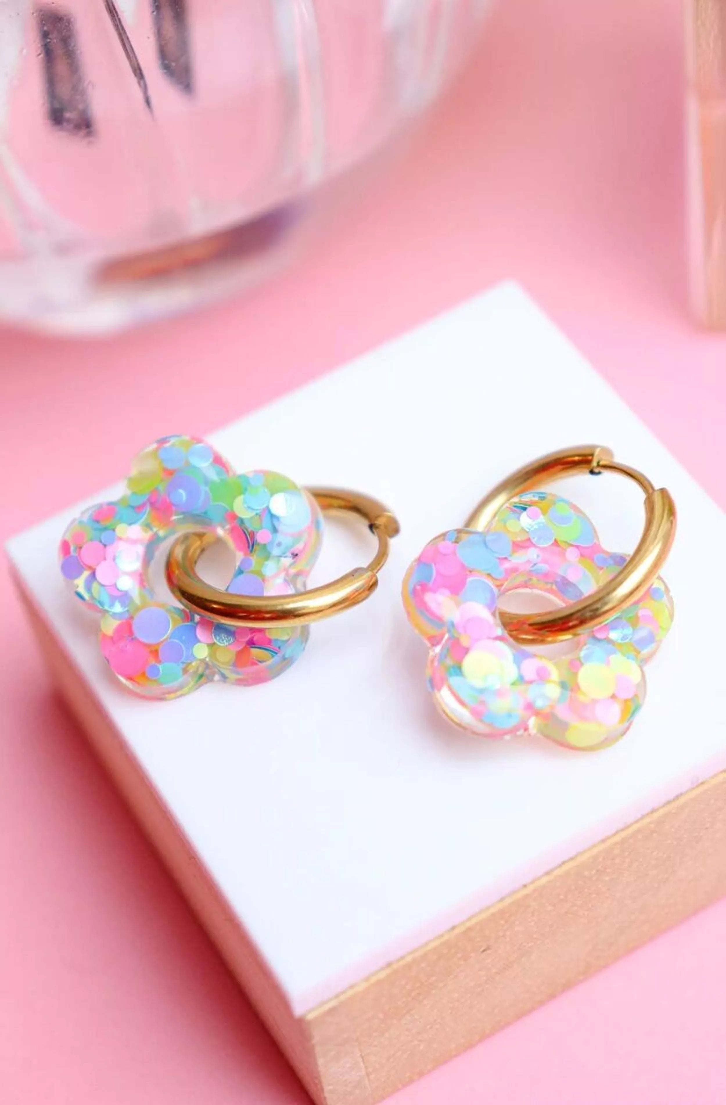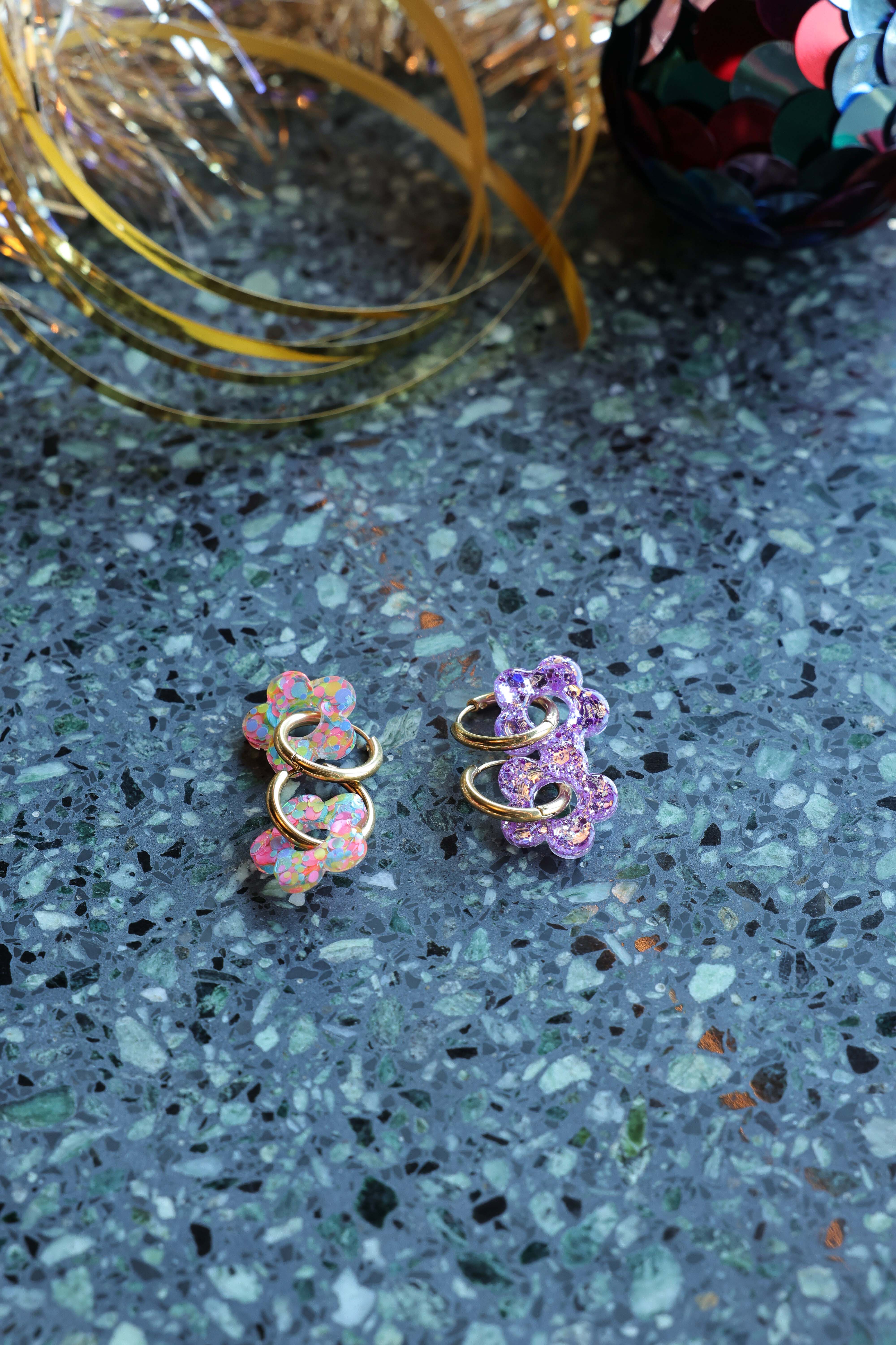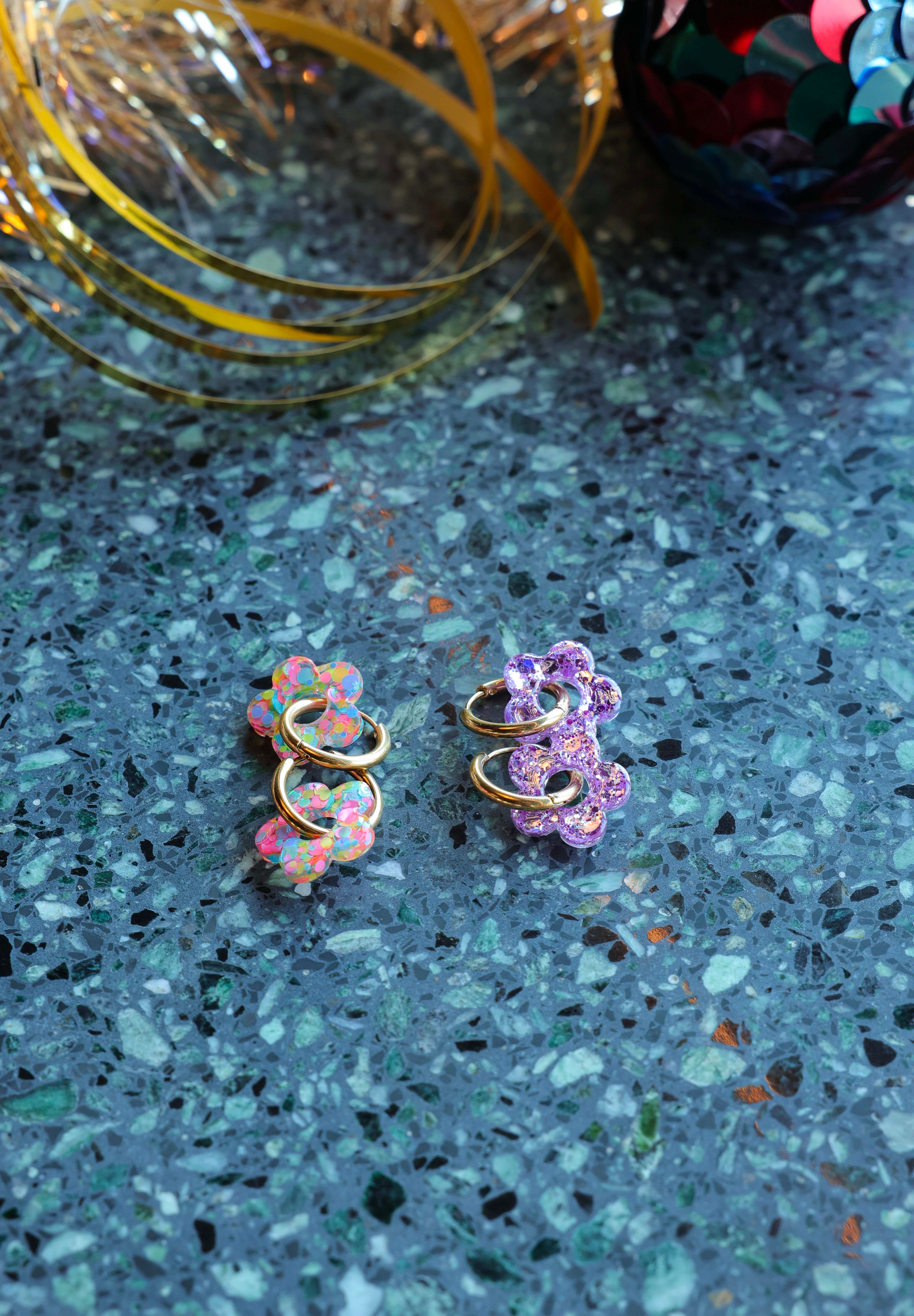 Craquez pour ces créoles fleuries en résine qui apportent instantanément une touche fraîche, joyeuse et féminine à vos tenues.