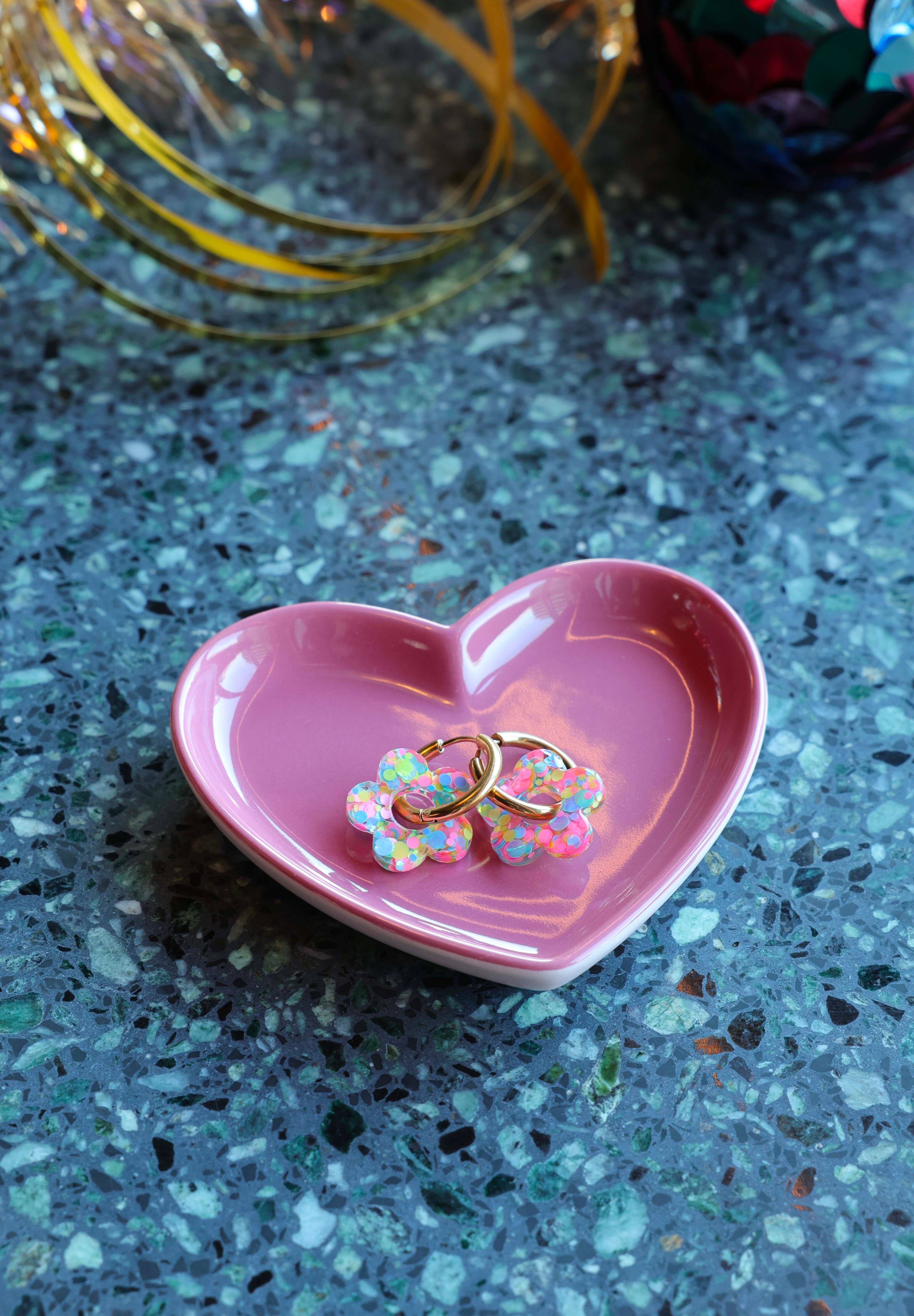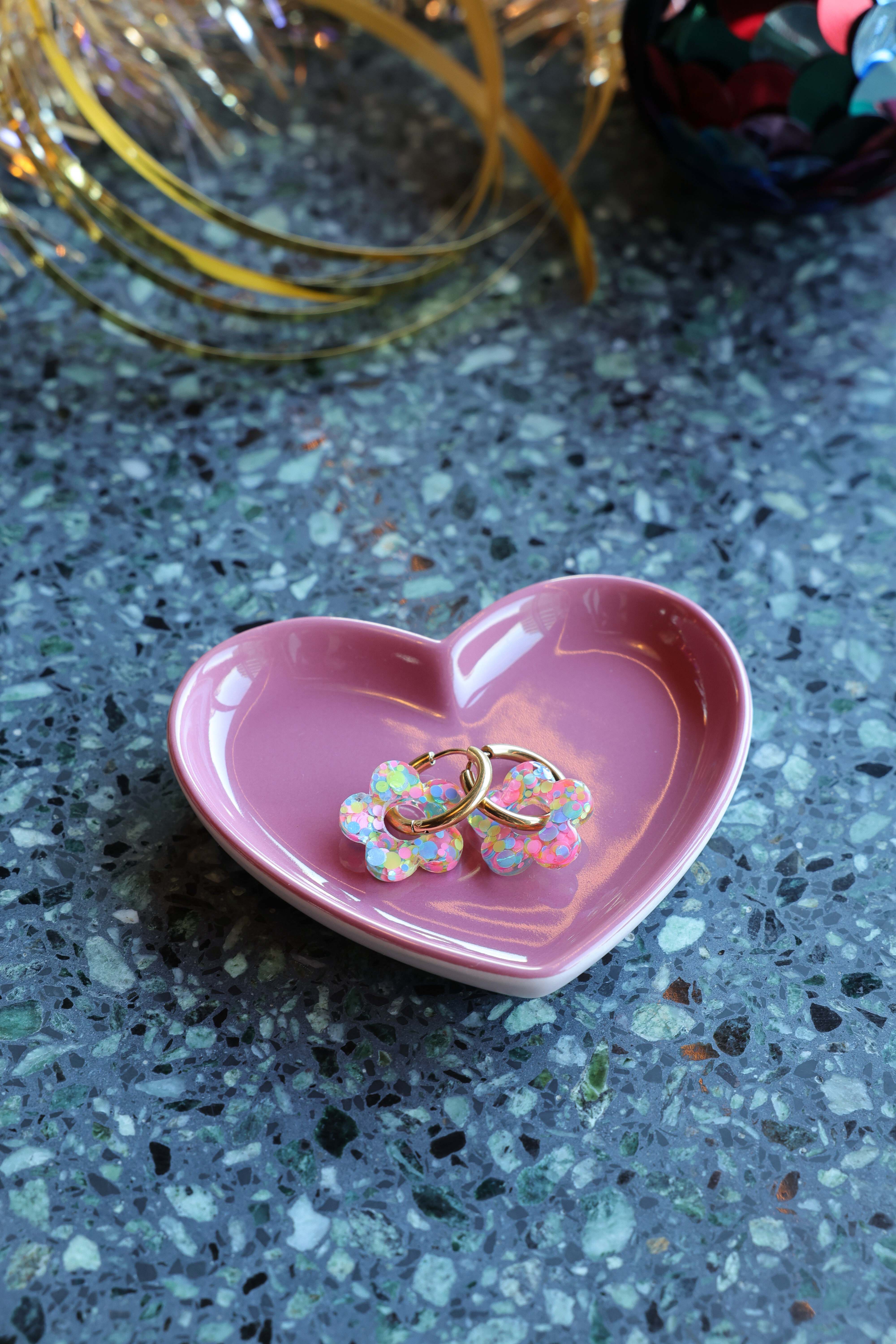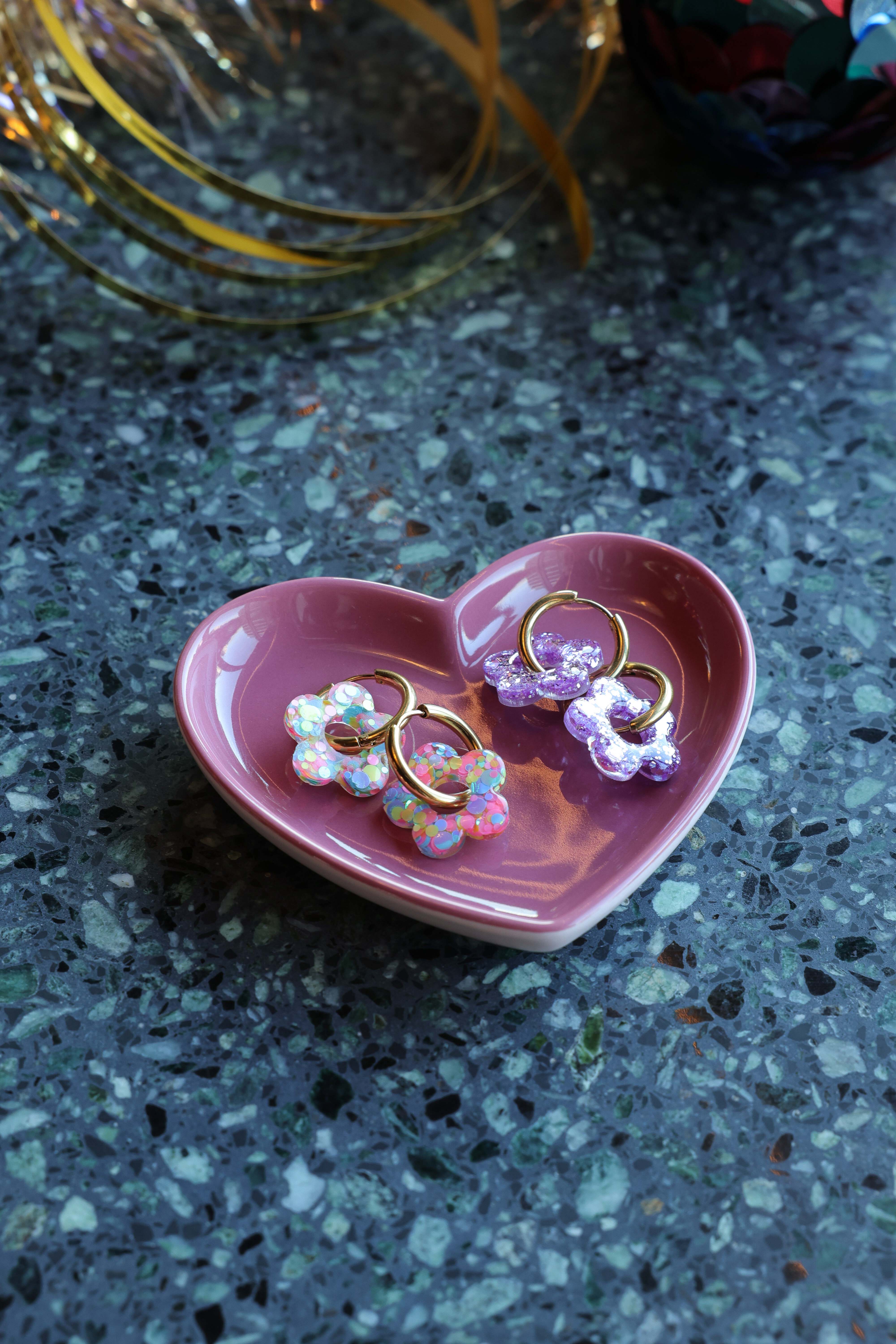 Avec leur petite fleur en résine et leur anneau doré, ces boucles mêlent fantaisie, douceur et éclat… tout ce qu’on aime chez Éclats de Jade 💖