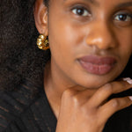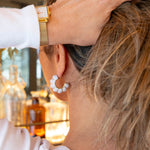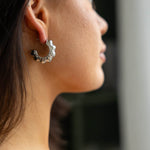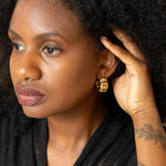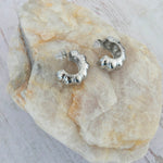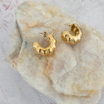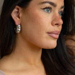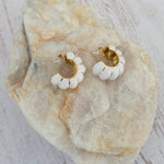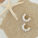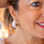 Boucles d'oreilles type créoles en acier inoxydable composées d'un anneau large strié effet coquillage et en émail.