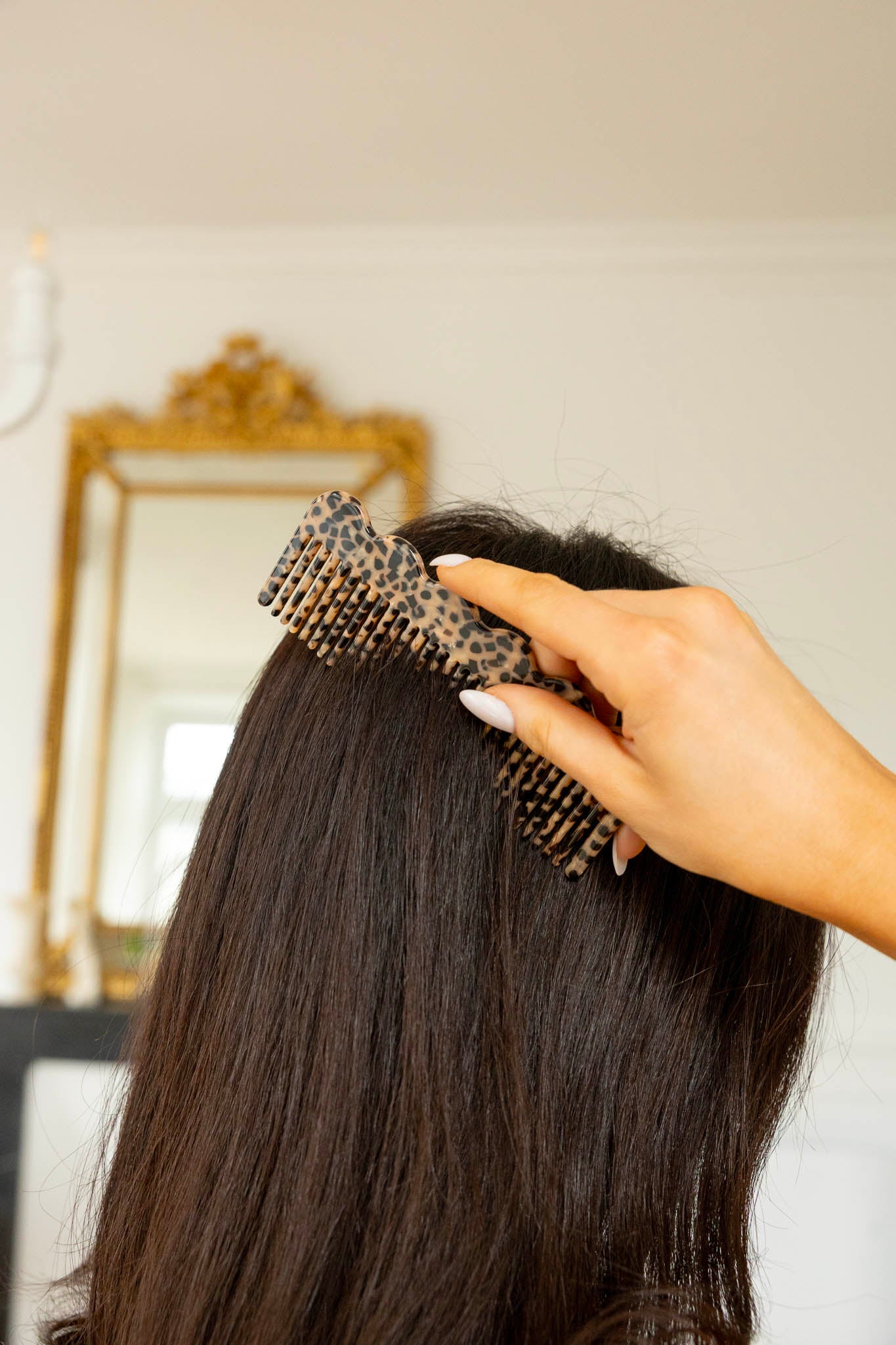 Glissez cet adorable peigne dans votre sac à main pour une retouche coiffure rapide et stylée à tout moment de la journée.