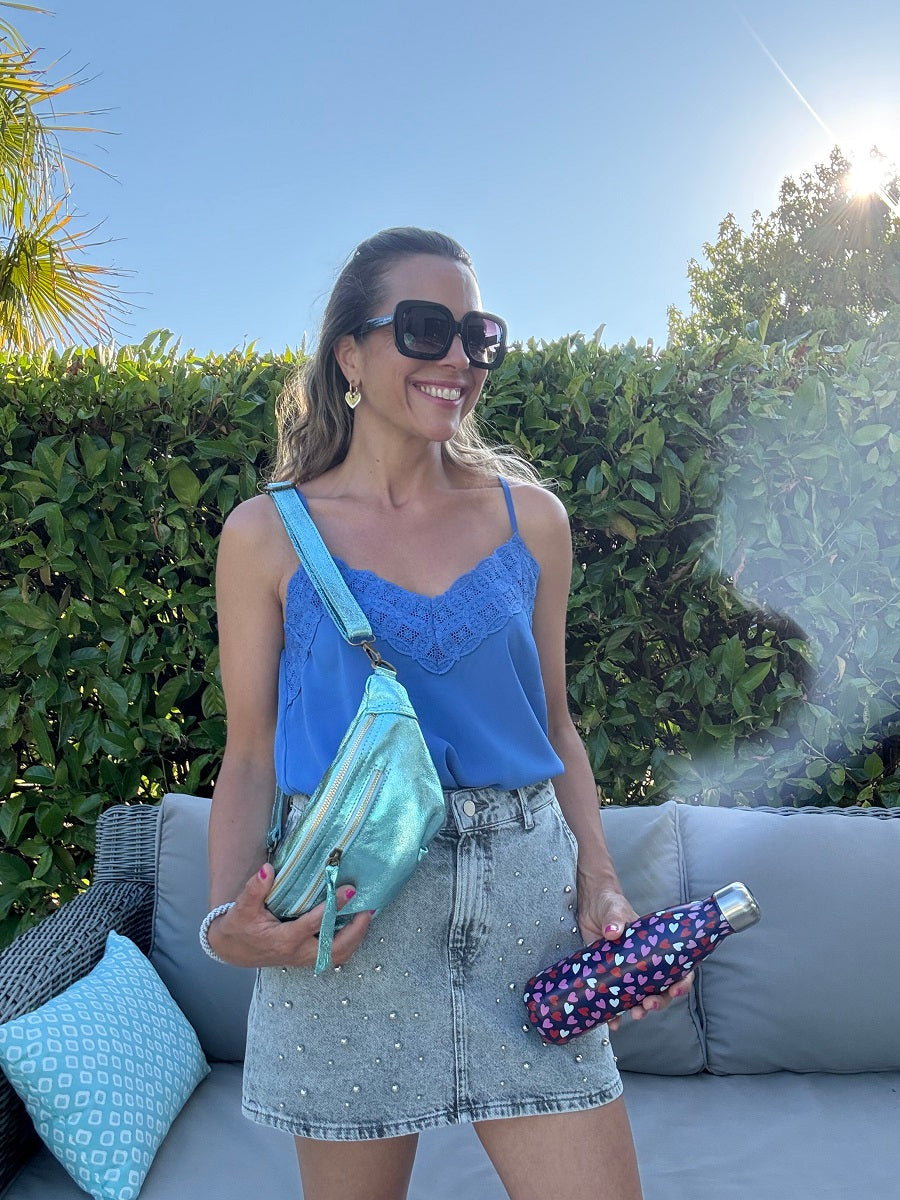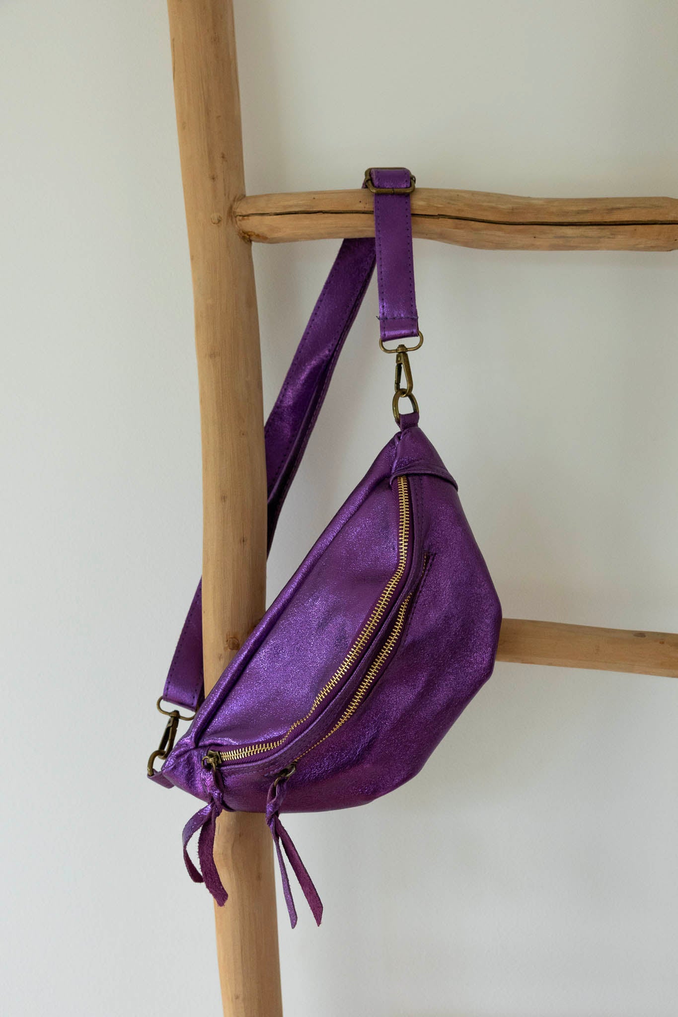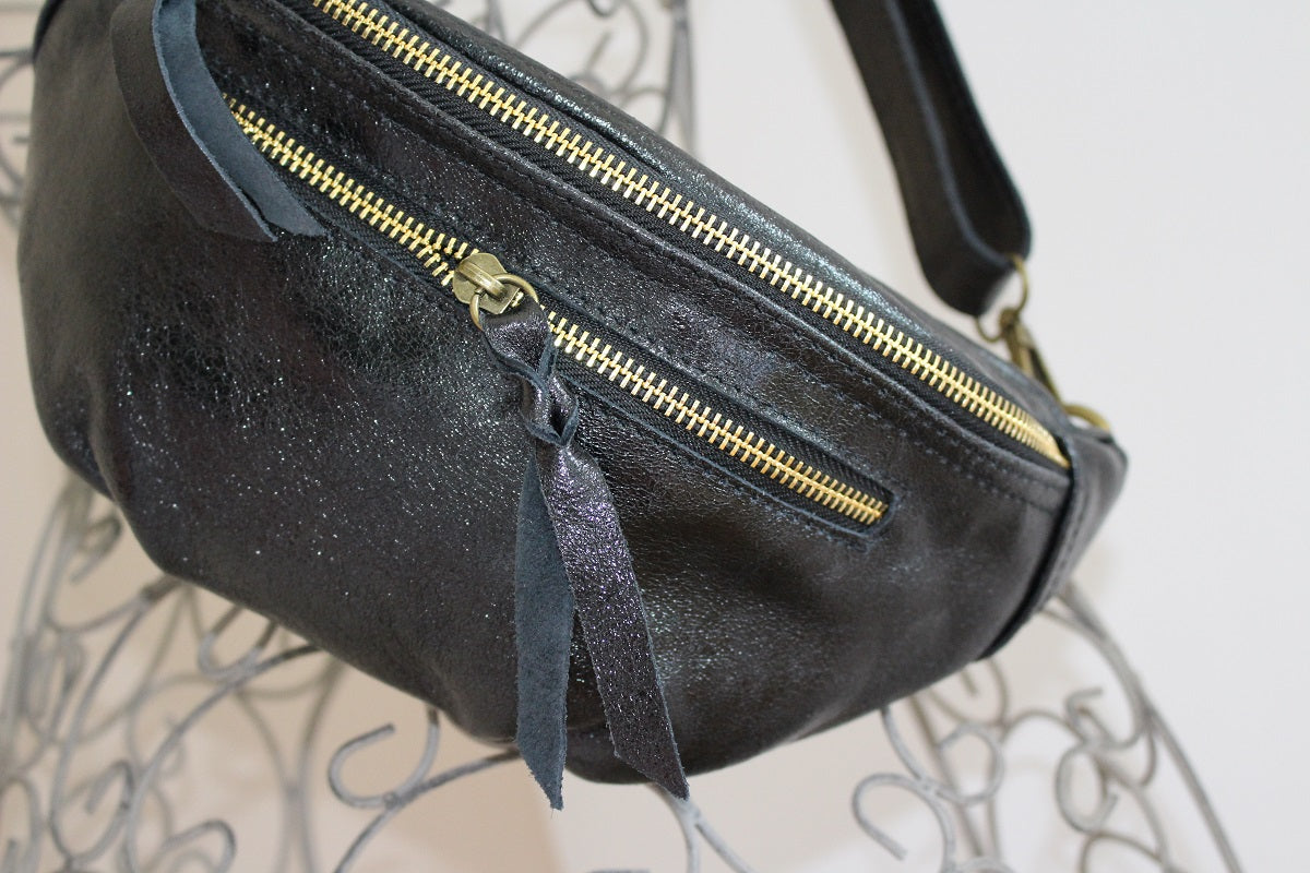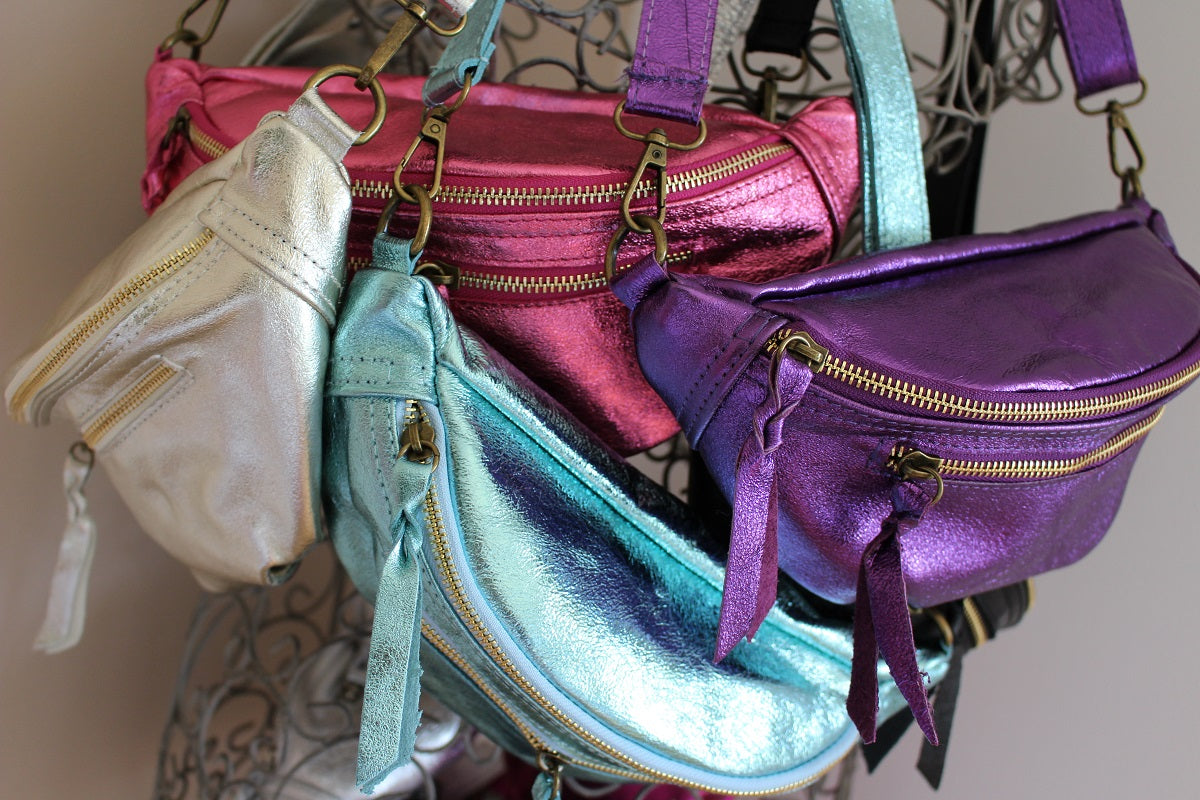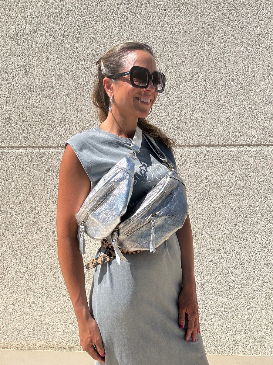 Avec sa forme arrondie ultra tendance, son cuir effet irisé et ses finitions lumineuses, ce modèle demi-lune se porte à la taille ou en crossbody pour garder les mains libres avec élégance.