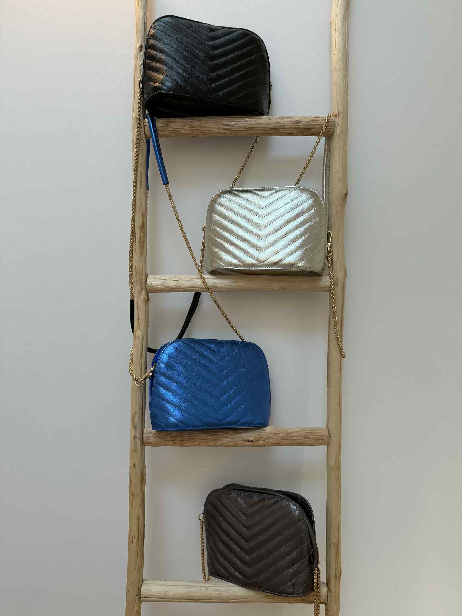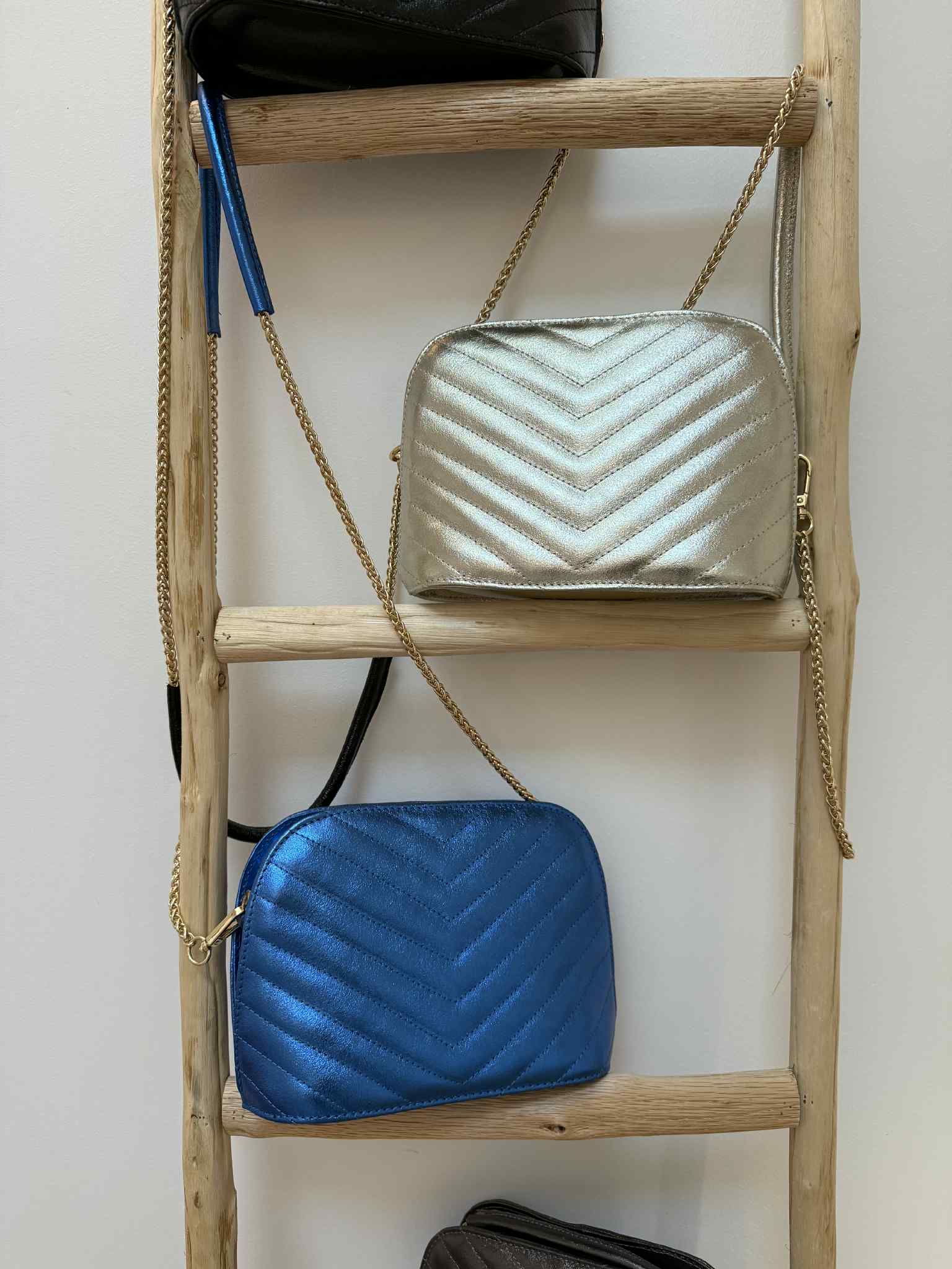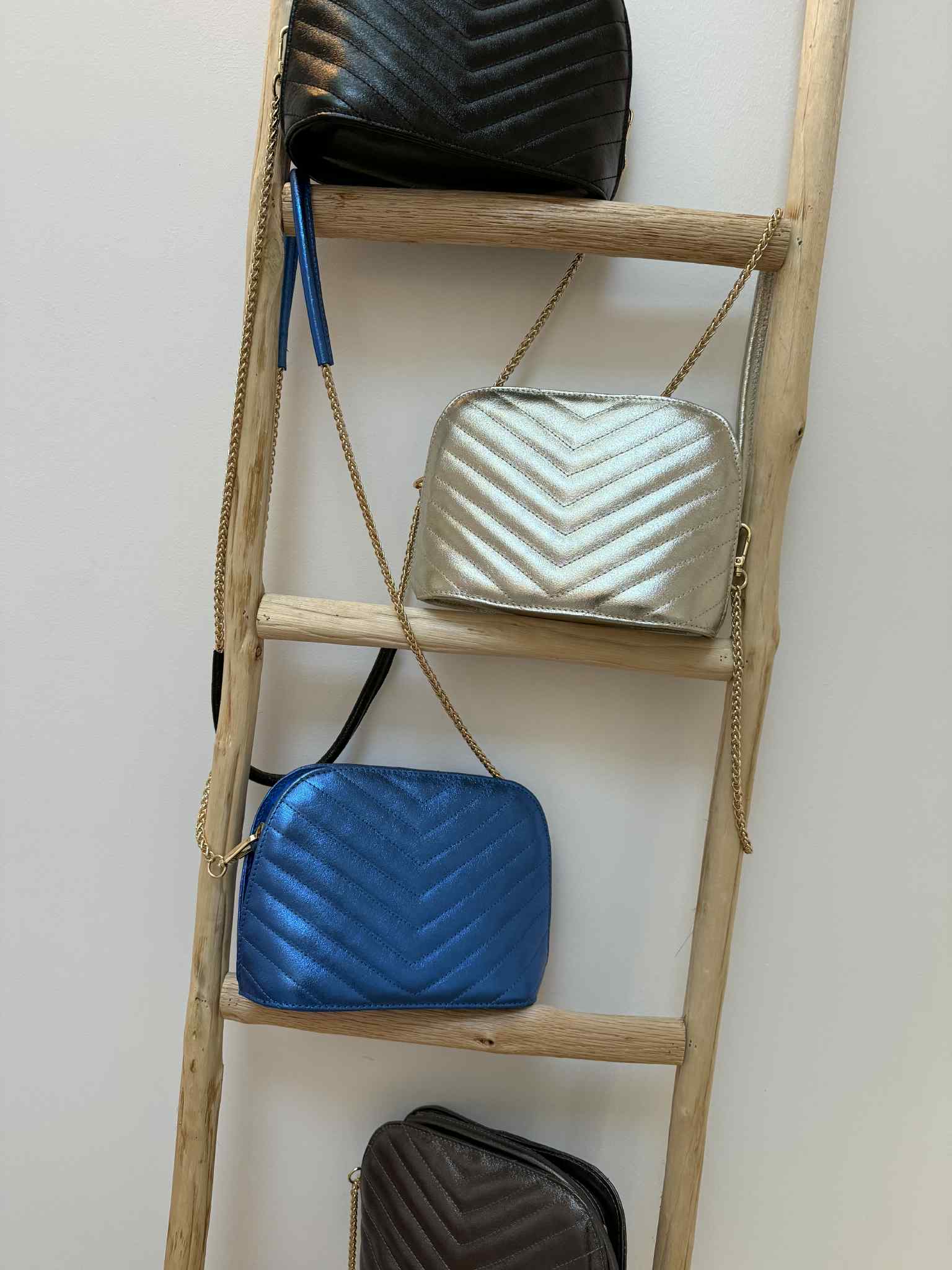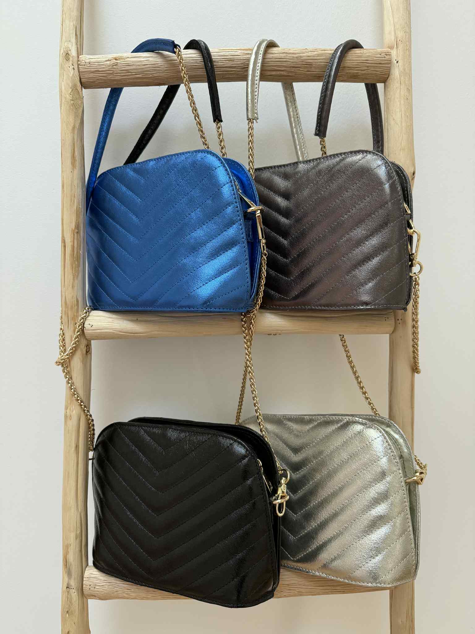 Le sac Sensa séduit par son cuir véritable à la finition irisée et son matelassage en V, au rendu graphique et chic ✨