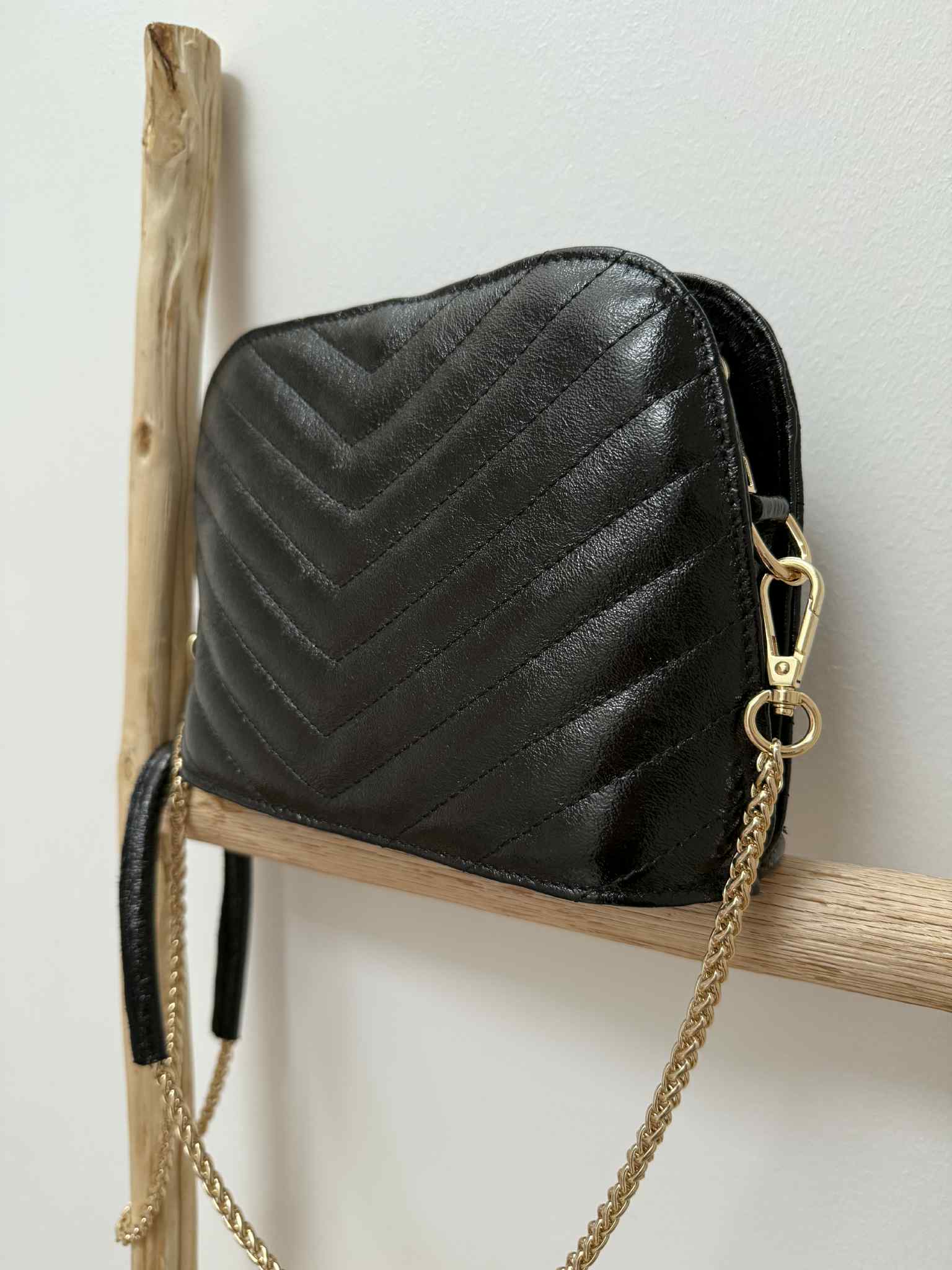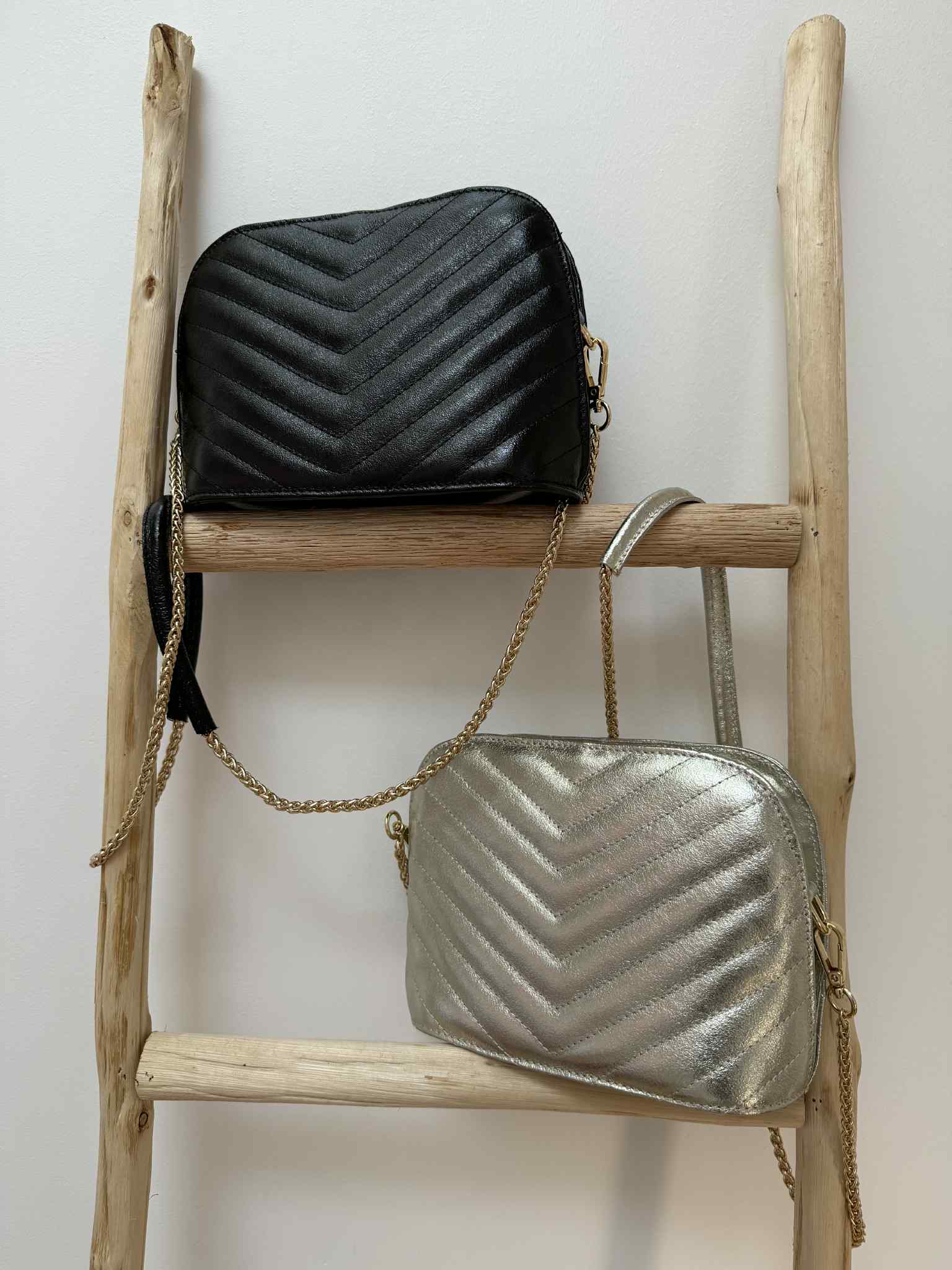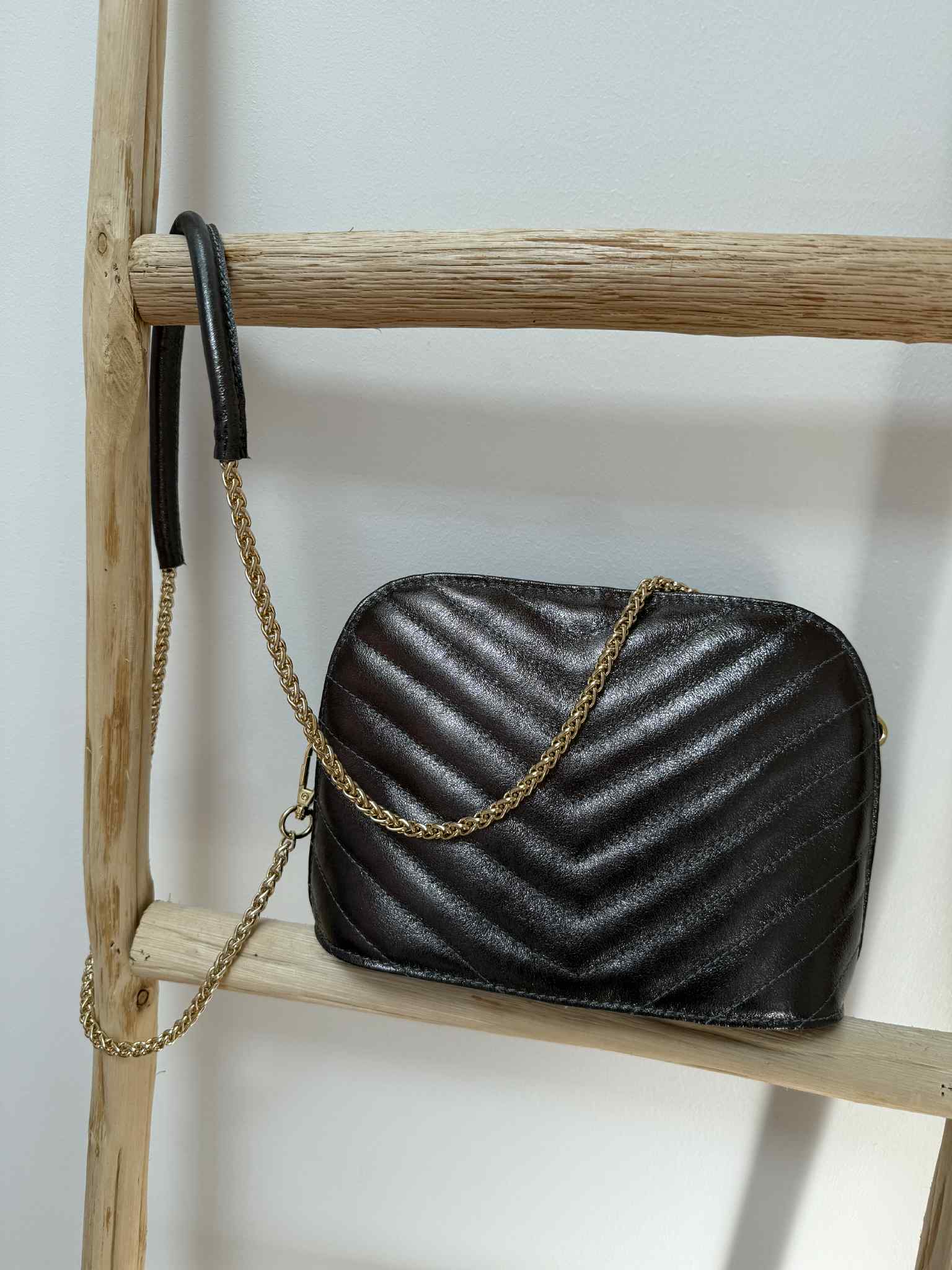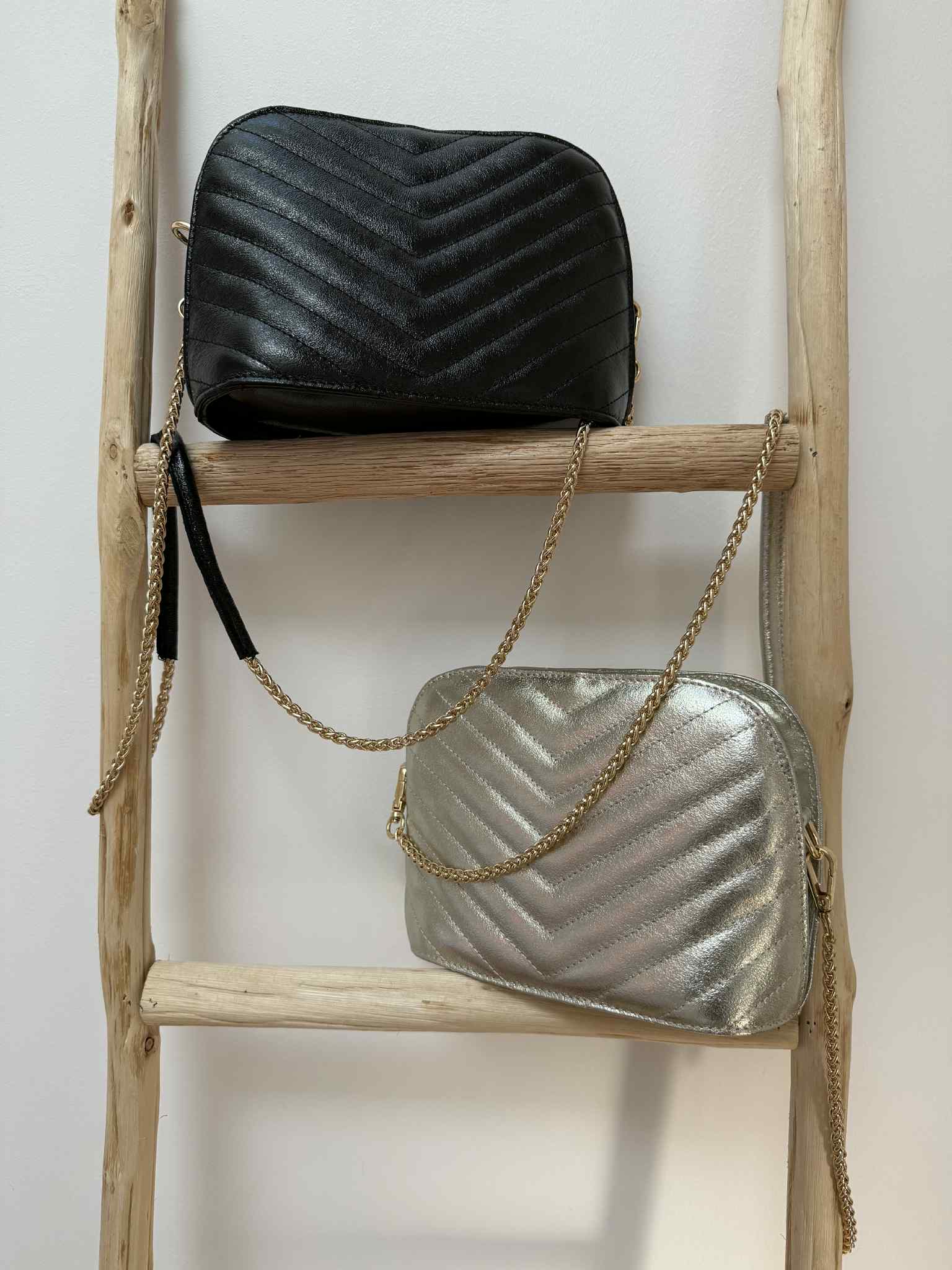 Le sac Sensa séduit par son cuir véritable à la finition irisée et son matelassage en V, au rendu graphique et chic ✨