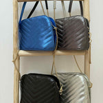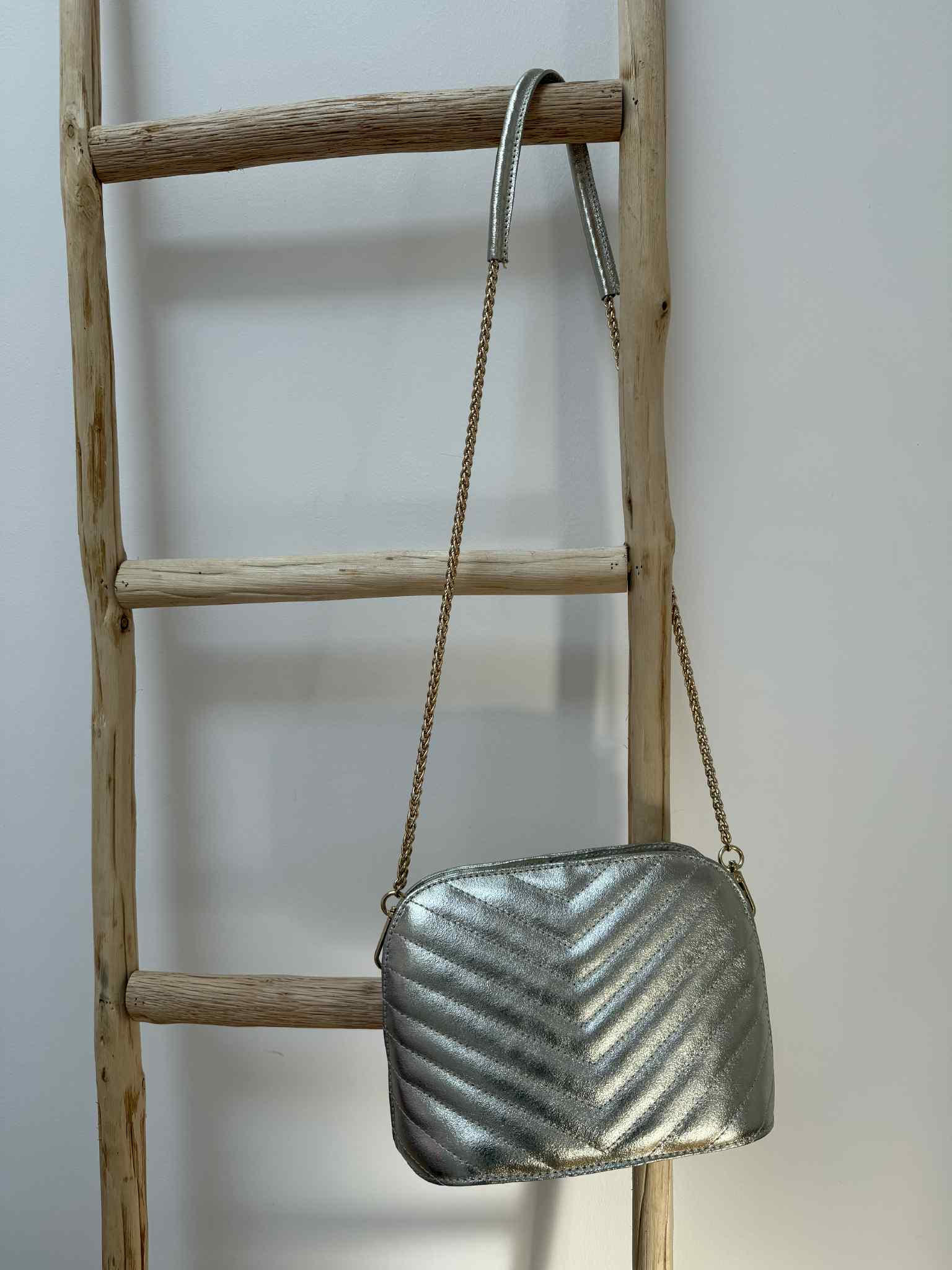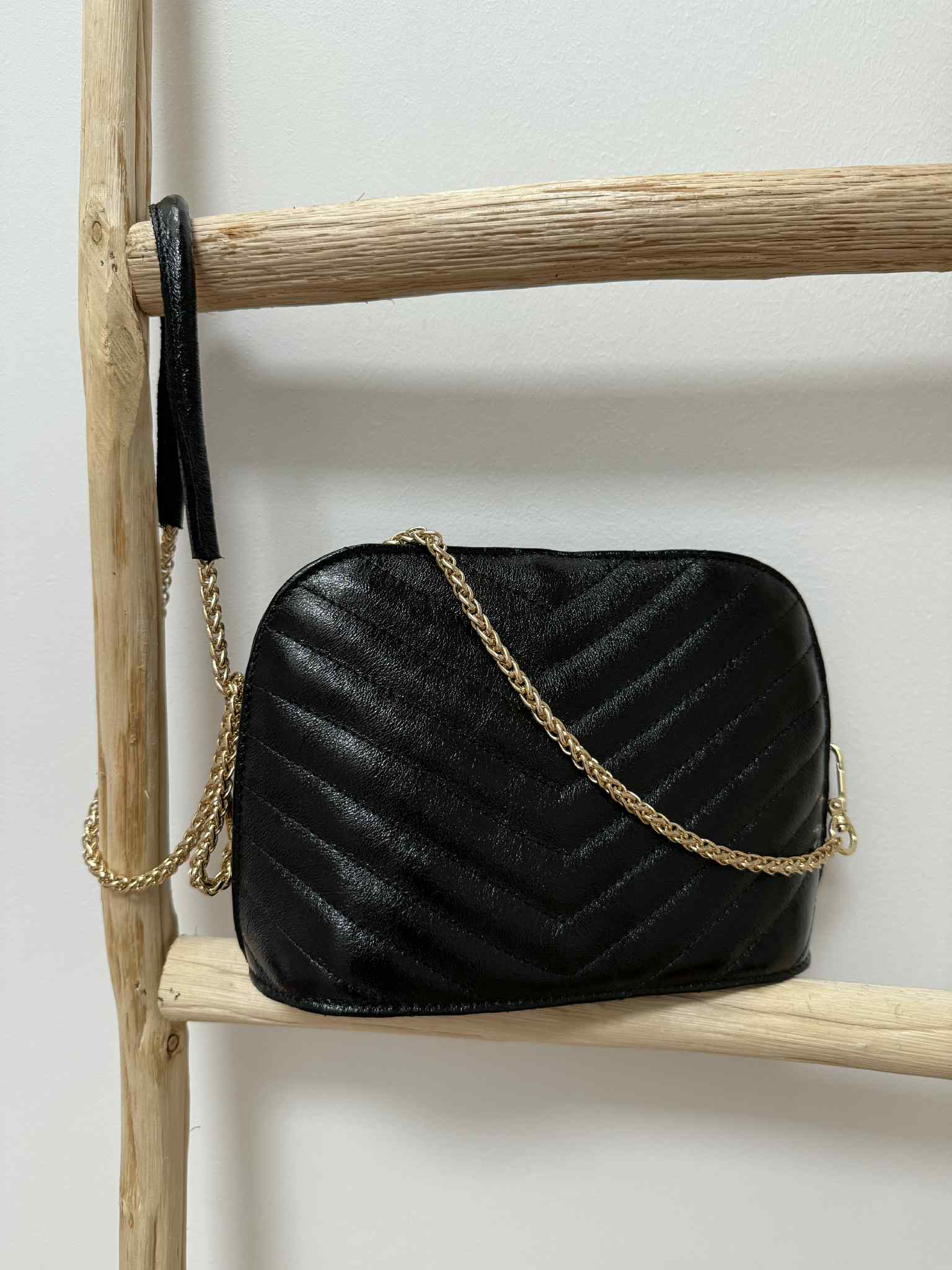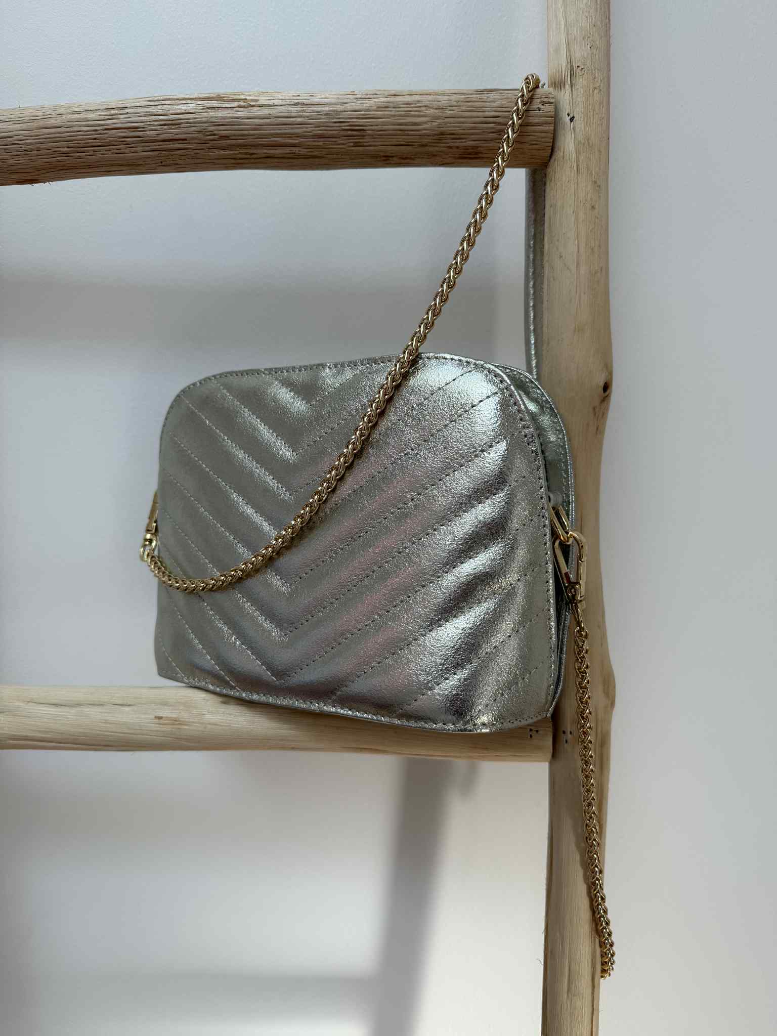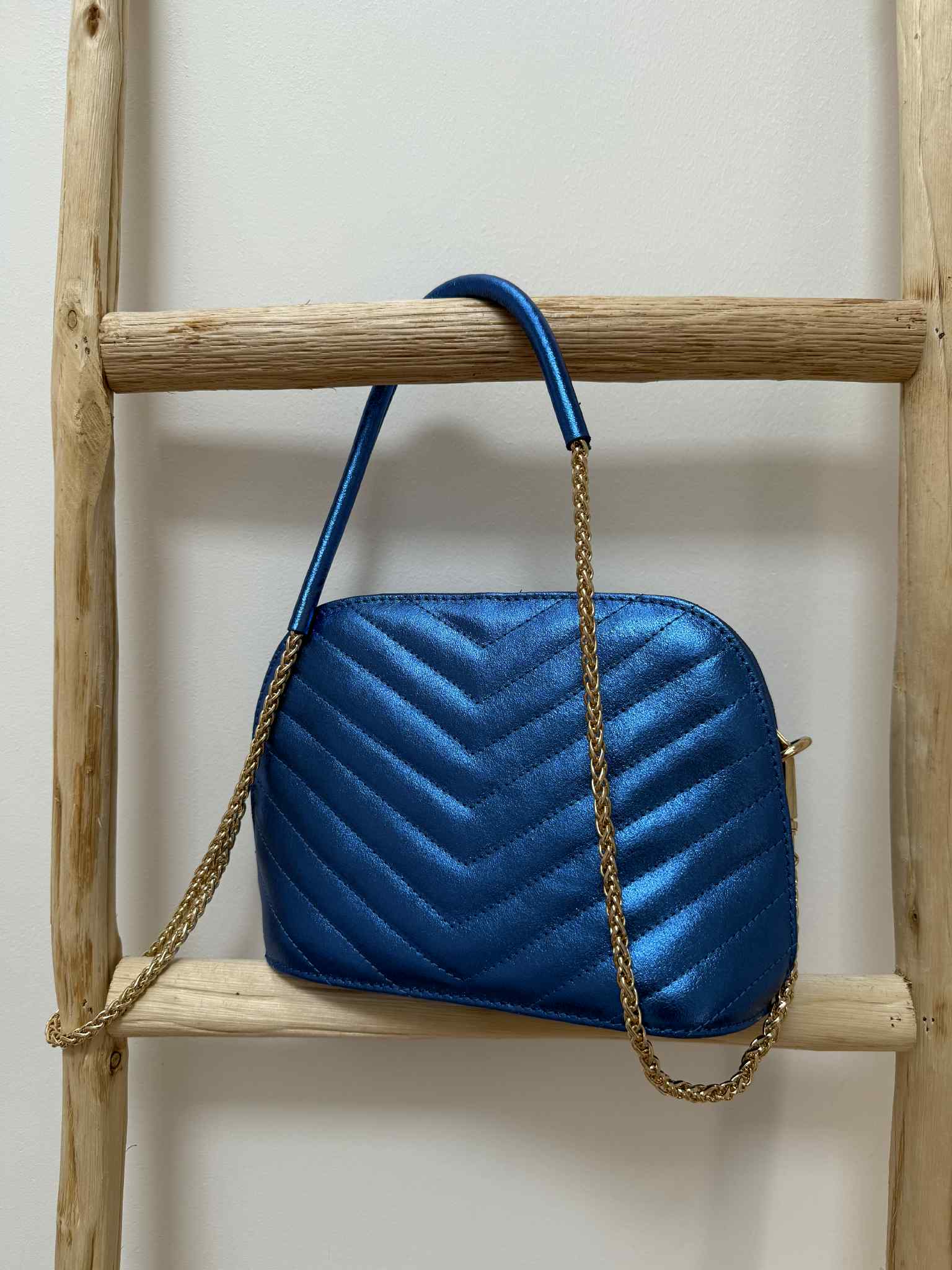 Le sac Sensa séduit par son cuir véritable à la finition irisée et son matelassage en V, au rendu graphique et chic ✨