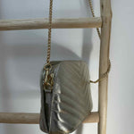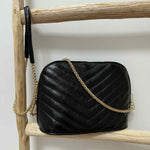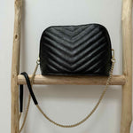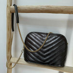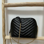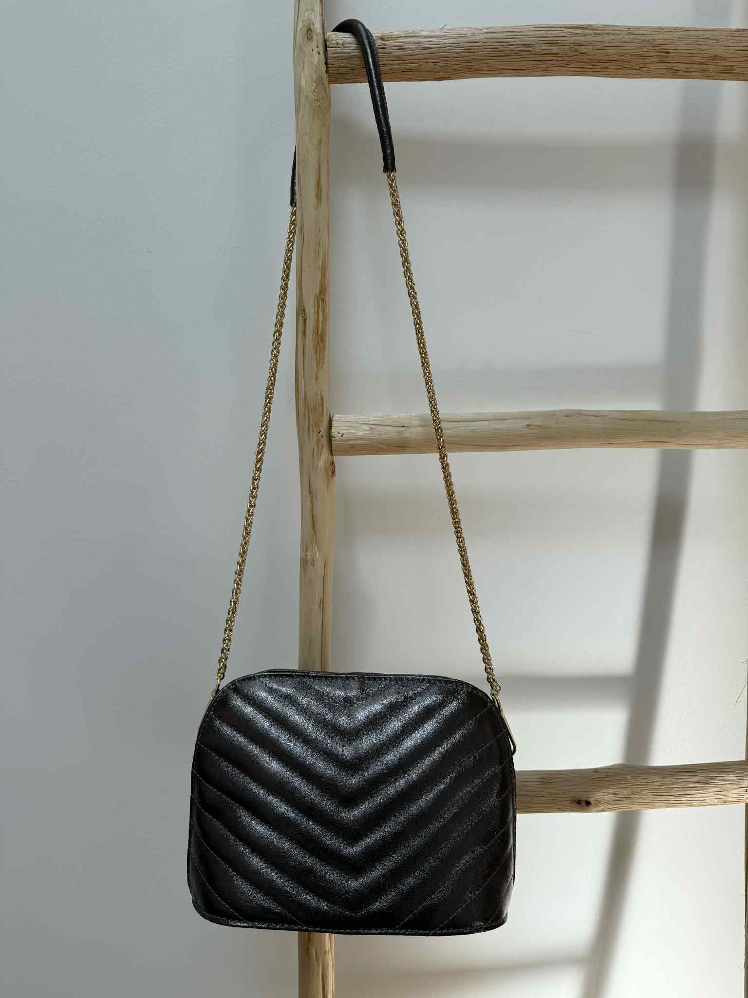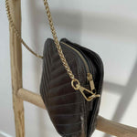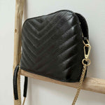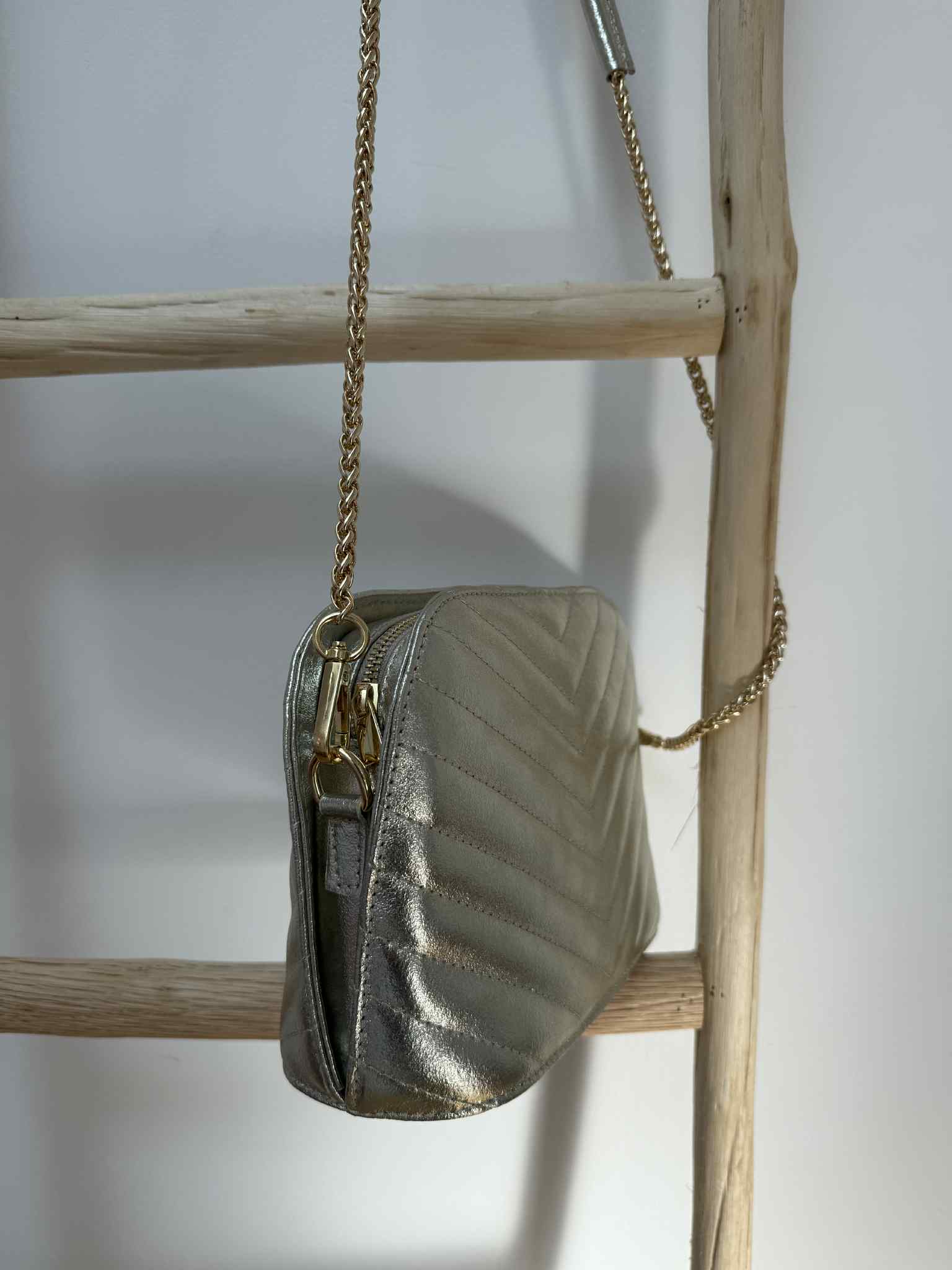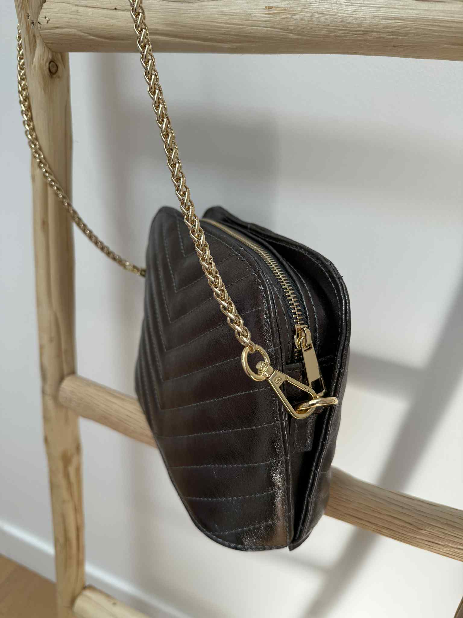 Son format compact accueille aisément vos essentiels du quotidien, tandis que sa chaîne dorée permet un porté épaule ou croisé.