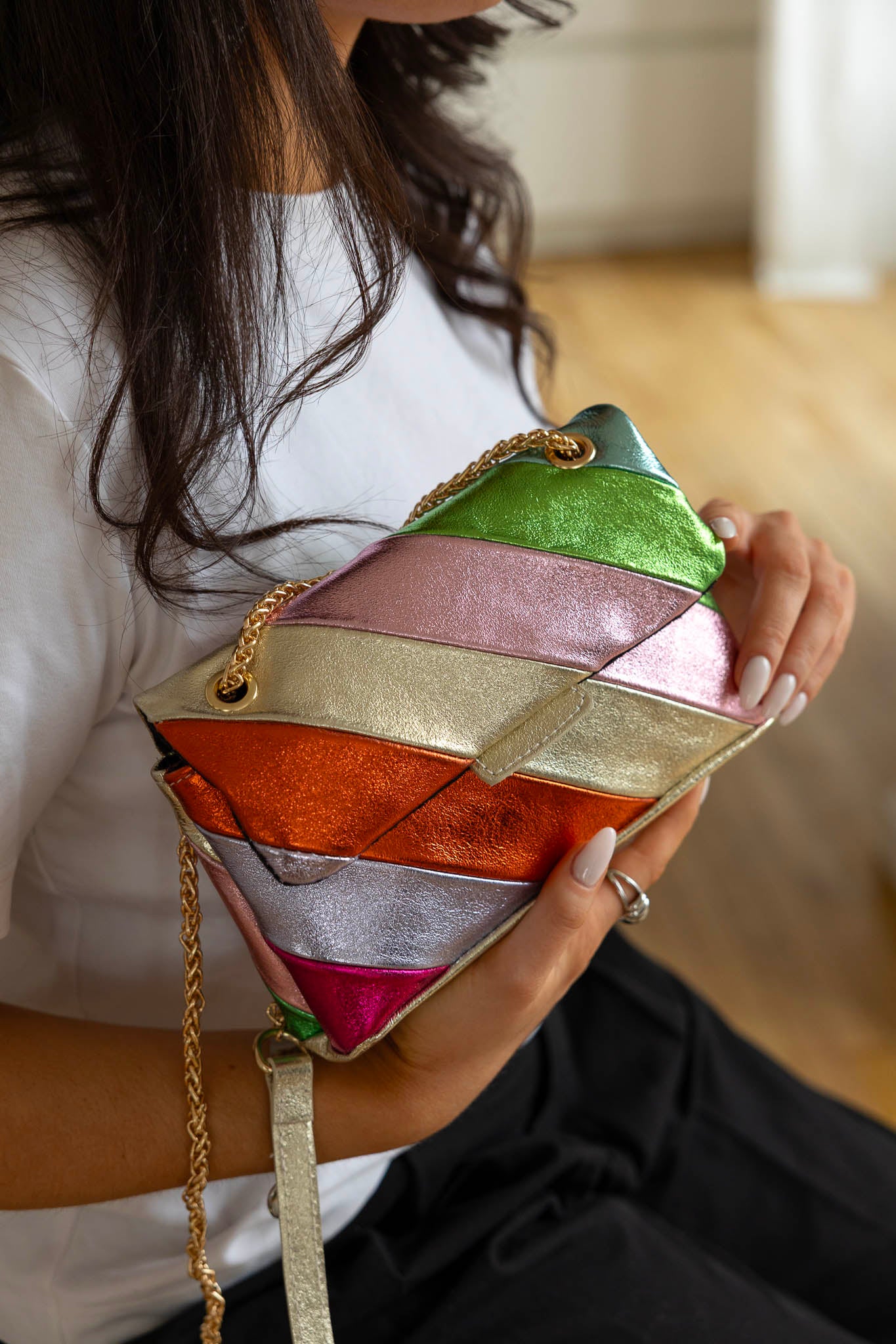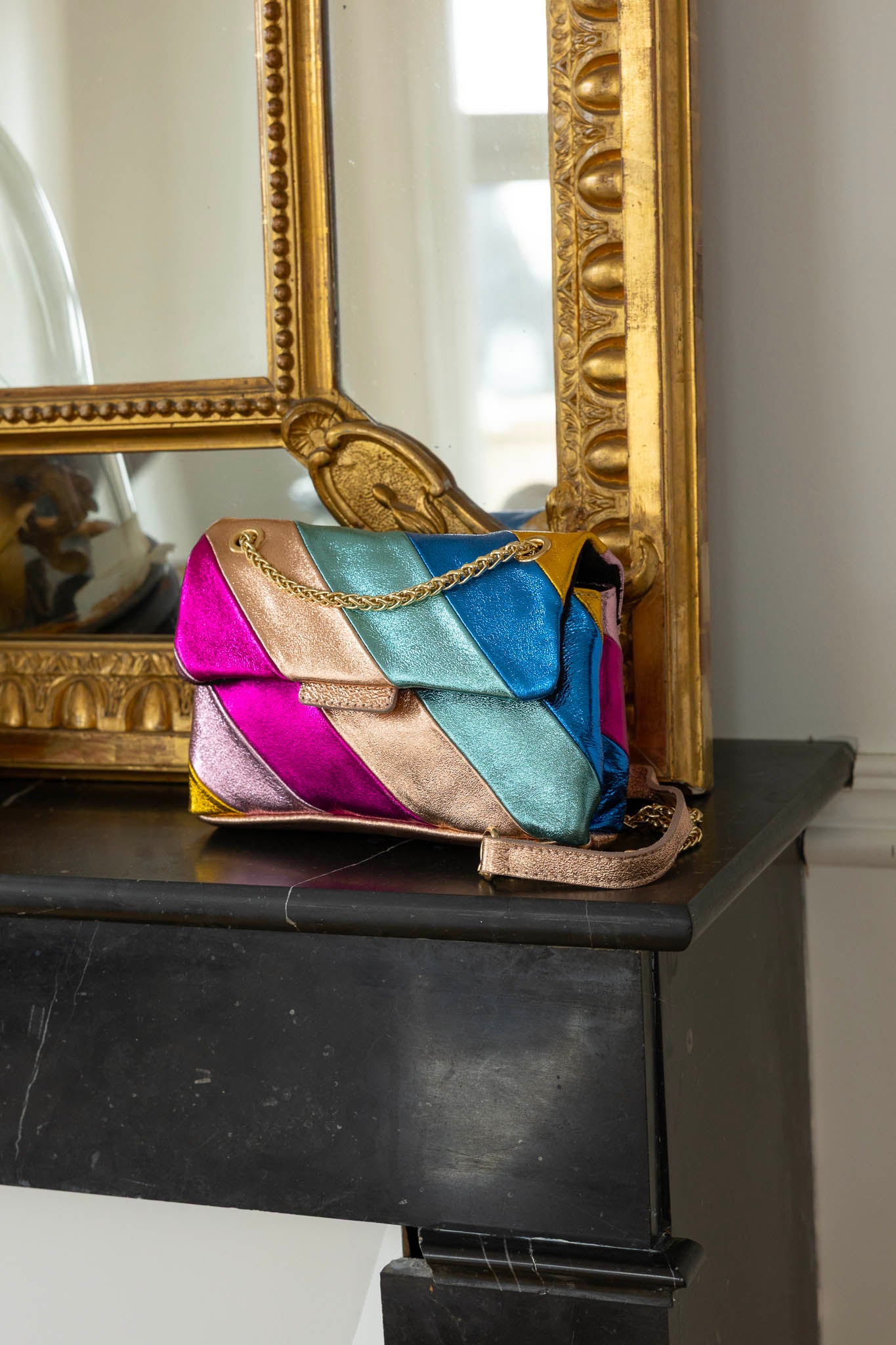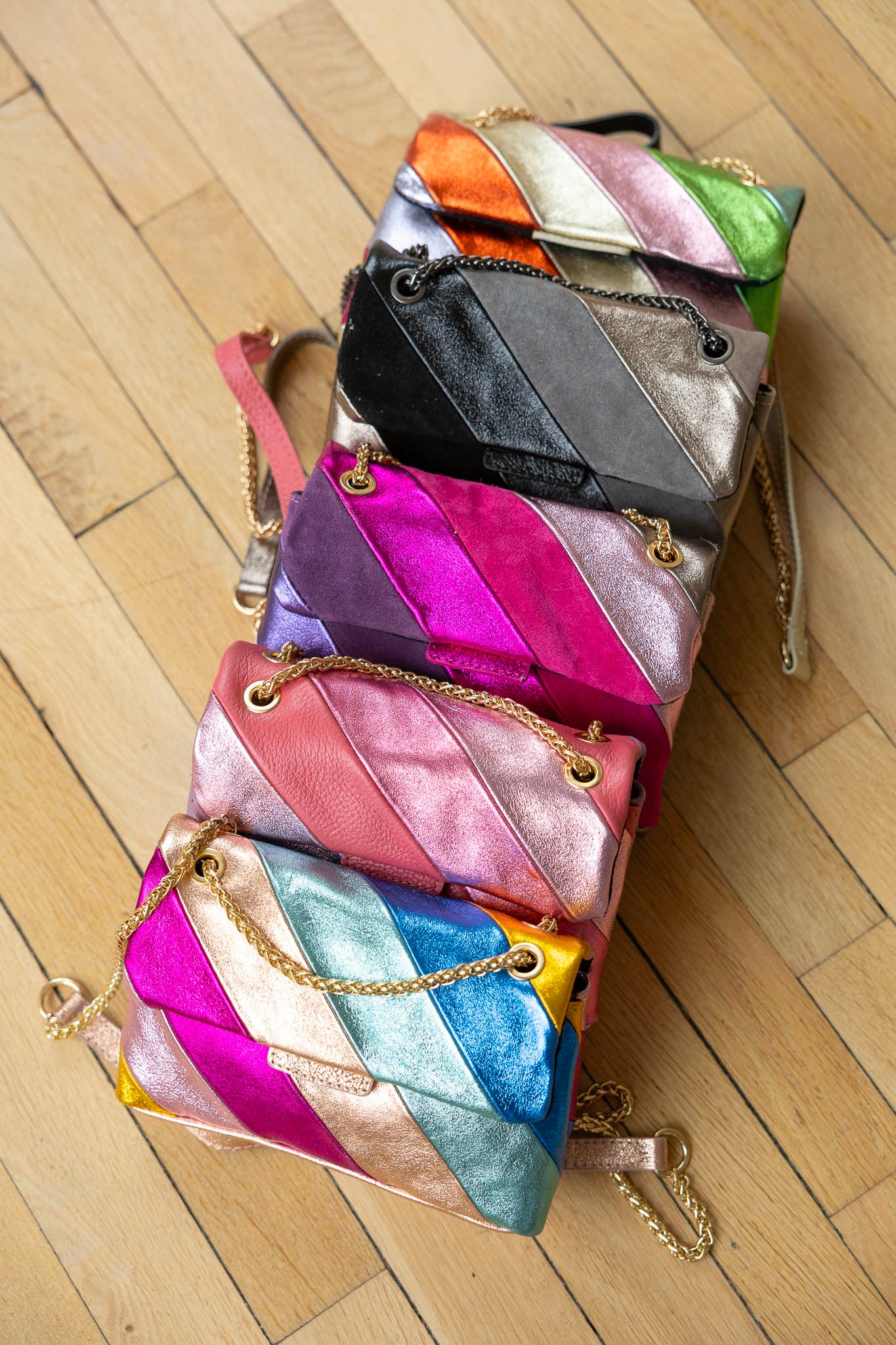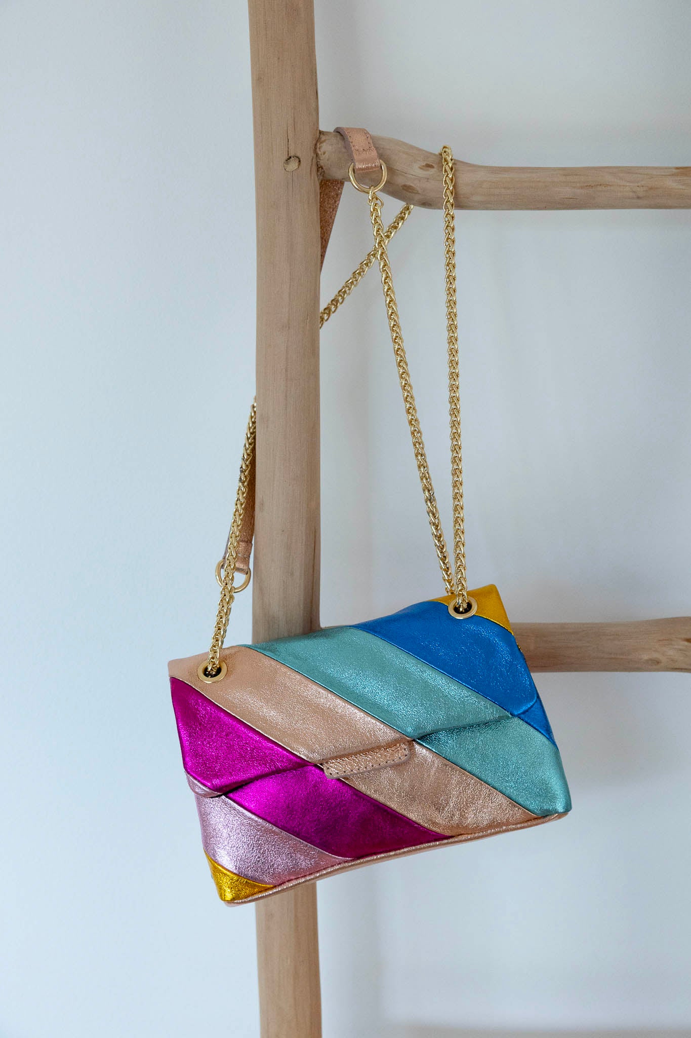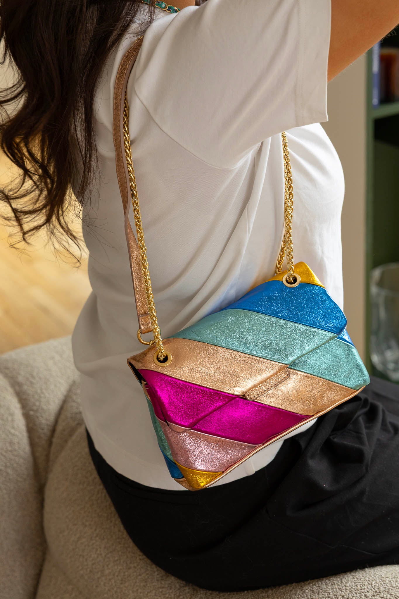 Pensé pour illuminer vos looks d’une touche chic et audacieuse, le sac Viva à bandoulière en cuir véritable, est le compagnon parfait pour pétiller en journée et briller en soirée !